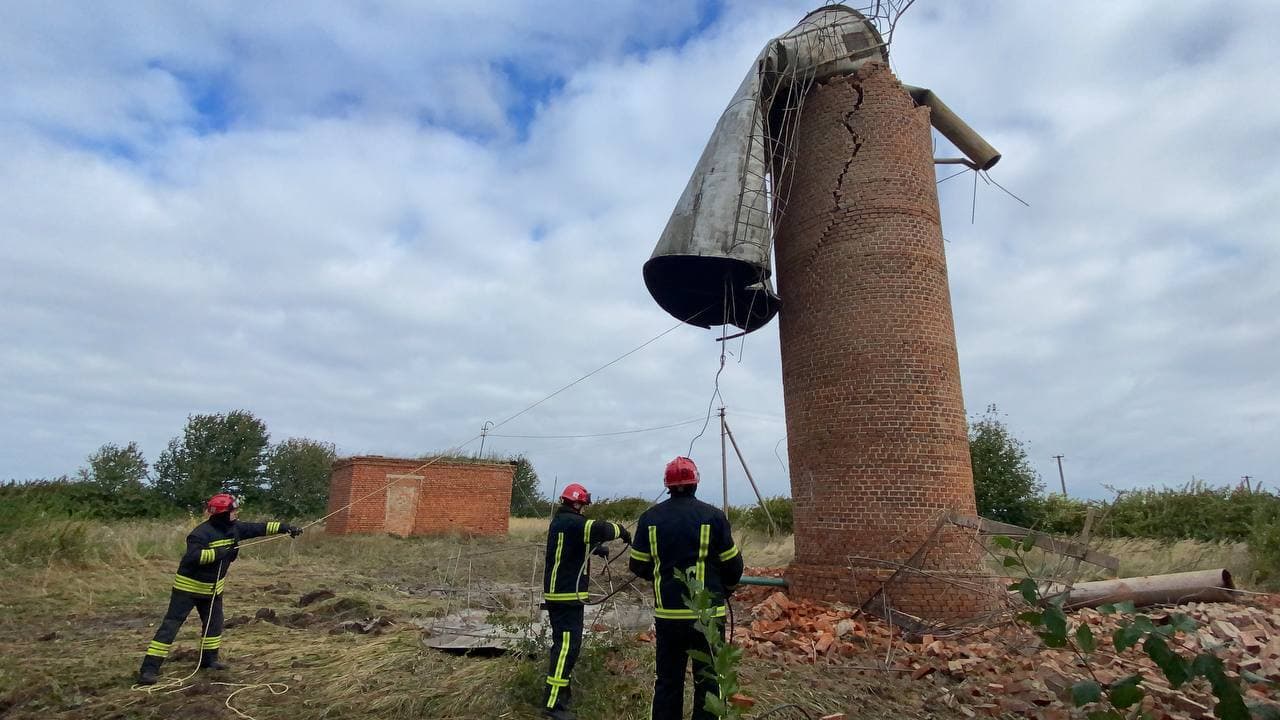 Луцькі рятувальники, прибувши на місце виклику, провели аварійно-рятувальні роботи. Зокрема, накинули металевий трос та закріпили його на зруйнованій конструкції резервуару і за допомогою лебідки ліквідували конструкцію, що могла будь-якої миті обірватися.