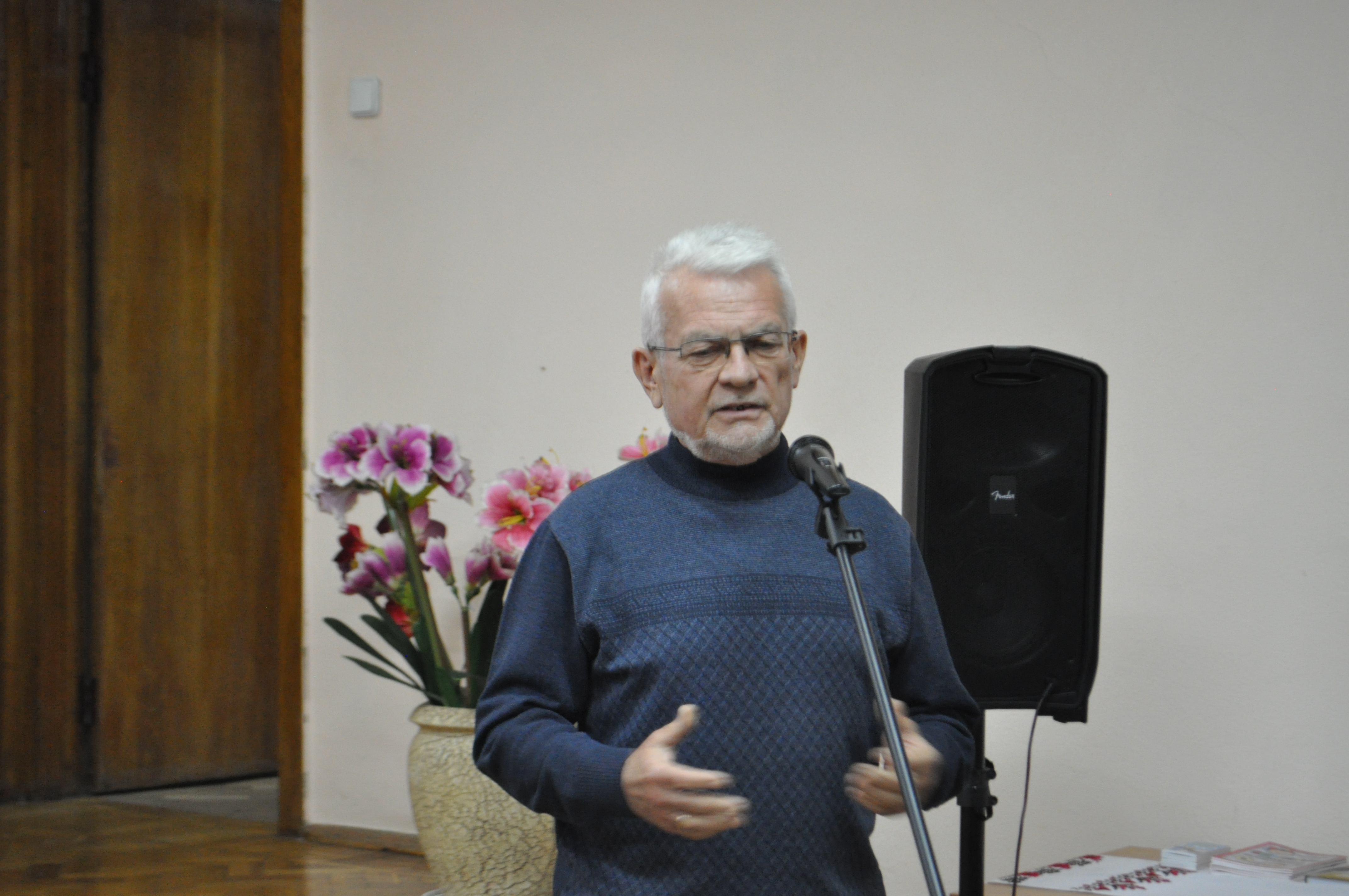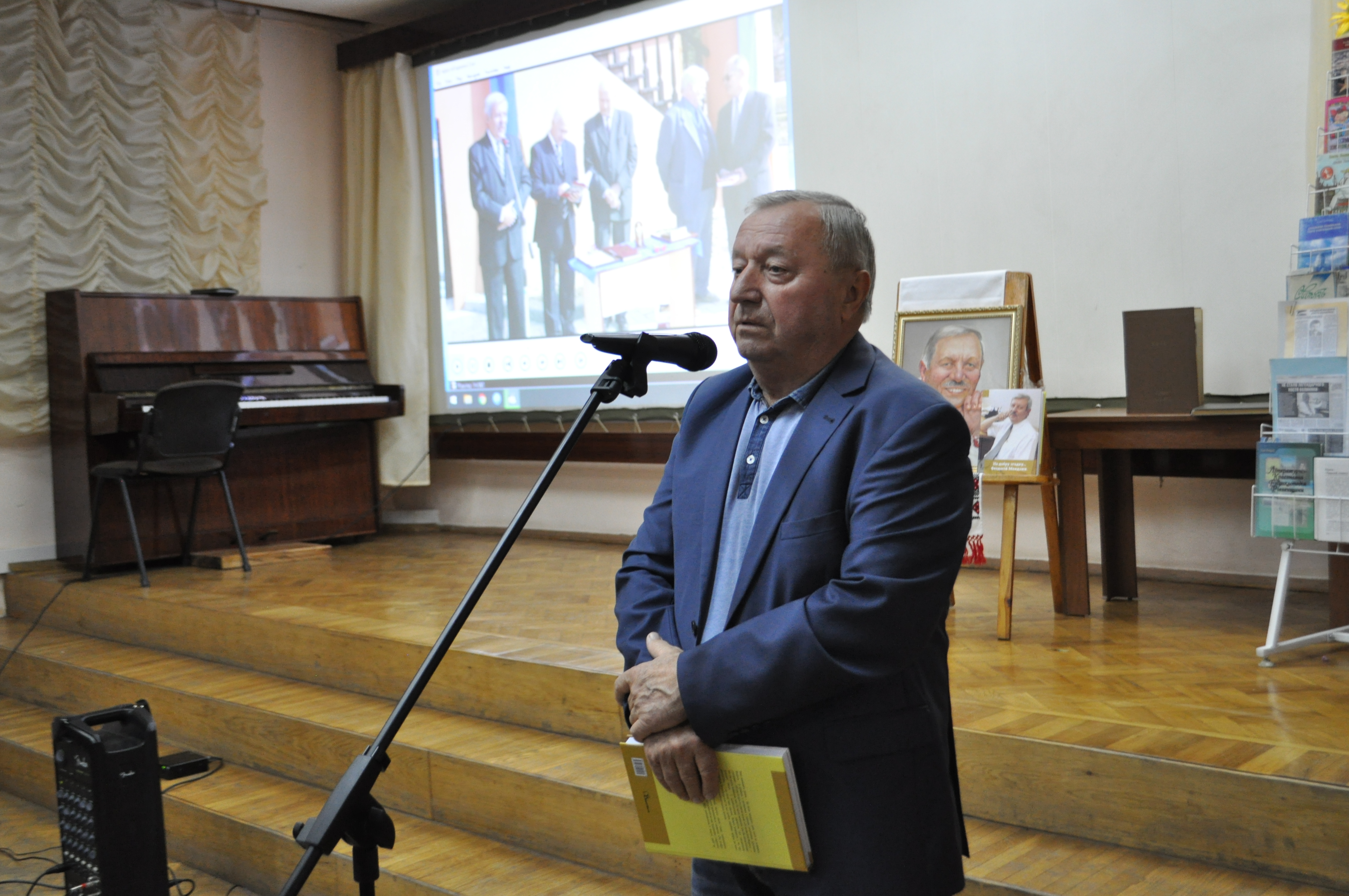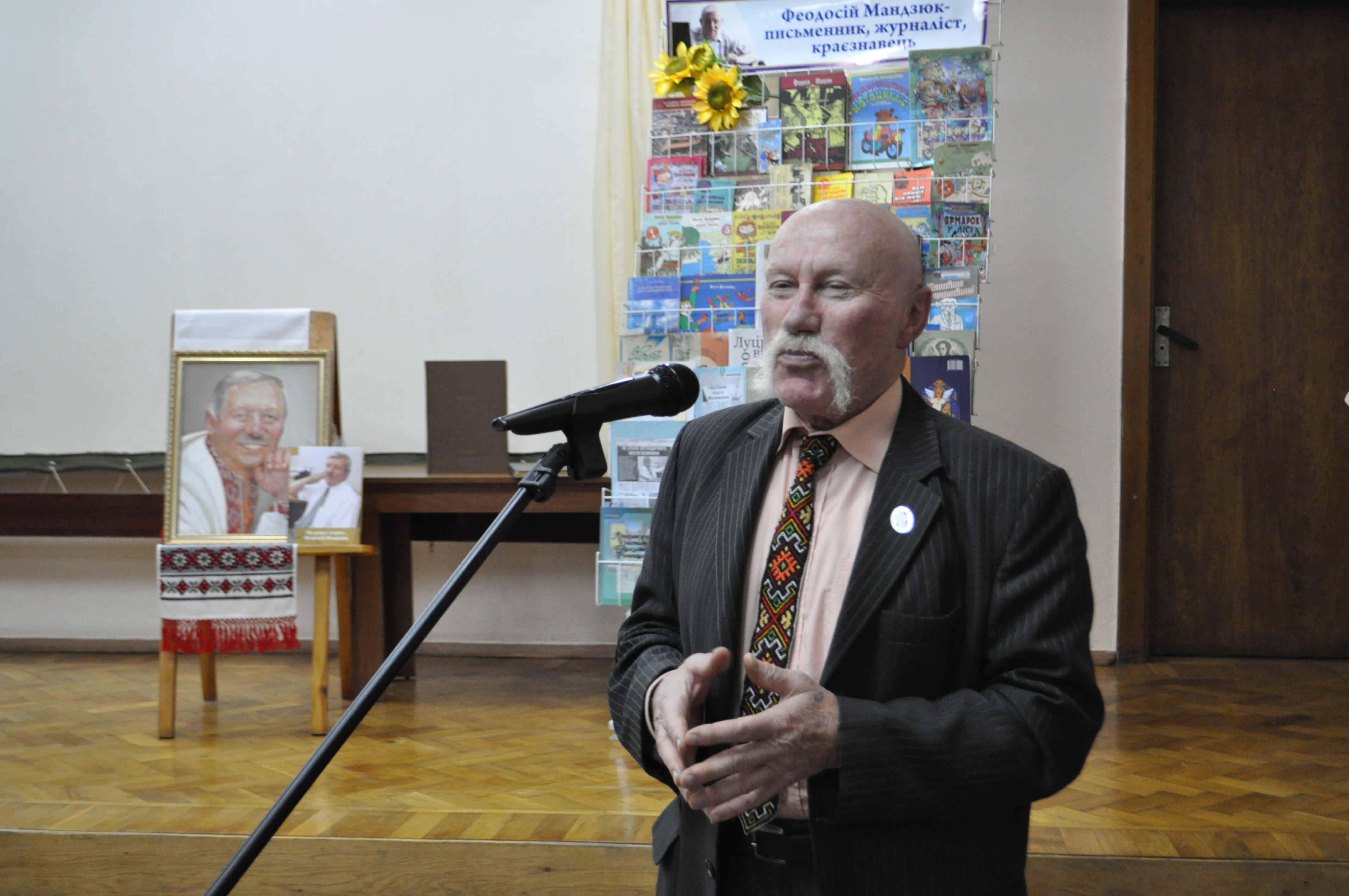 Ведуча вечора Ольга Кириченко оповіла про життєвий і творчий шлях письменника. Розповідь супроводжував показ світлин з різних віх життя Феодосія Манзюка.