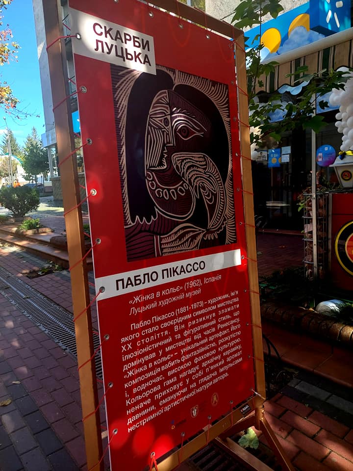 На вулиці Лесі Українки з'явився проєкт «Скарби Луцька». Це стенди, на яких представлені справжні шедеври мистецтва, розміщені у музеях міста.