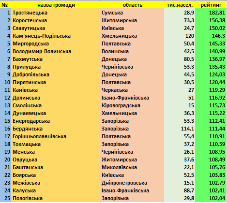 Володимир-Волинська громада з населенням 42,5 тисячі людей посіла 6 місце у цьому рейтингу. Перше місце зайняла Тростянецька громада Сумської області, де проживає 28,9 тисячі людей.