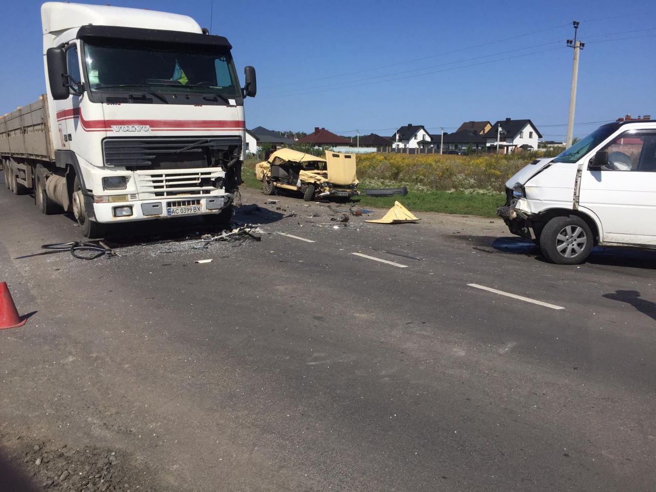 У селі Боратин Луцького району зіткнулися вантажівка, бус і легковик.