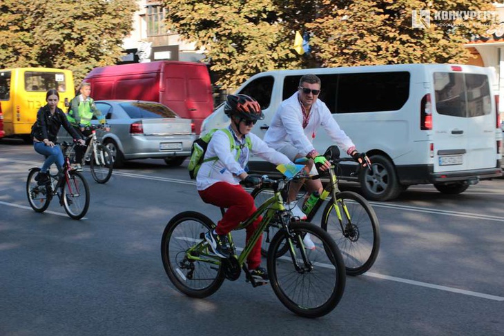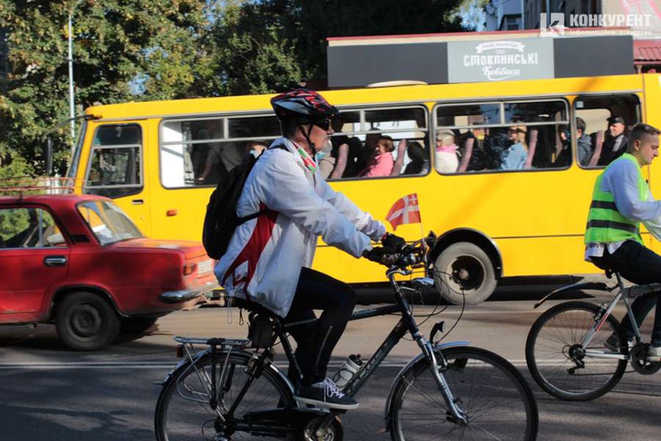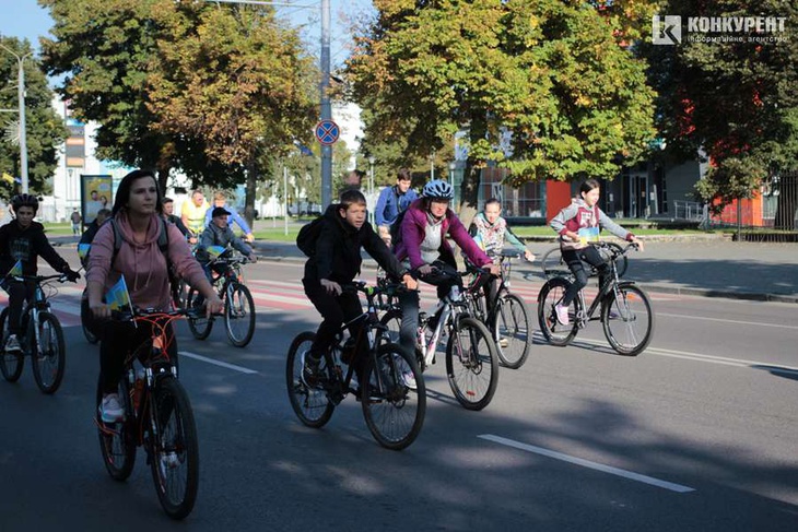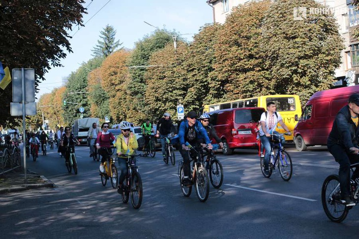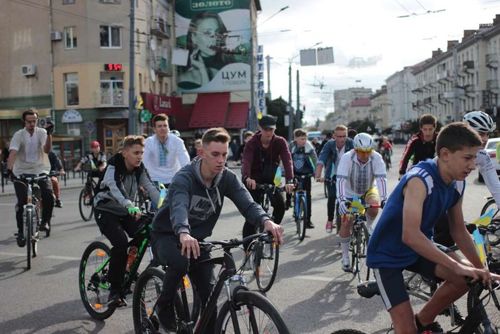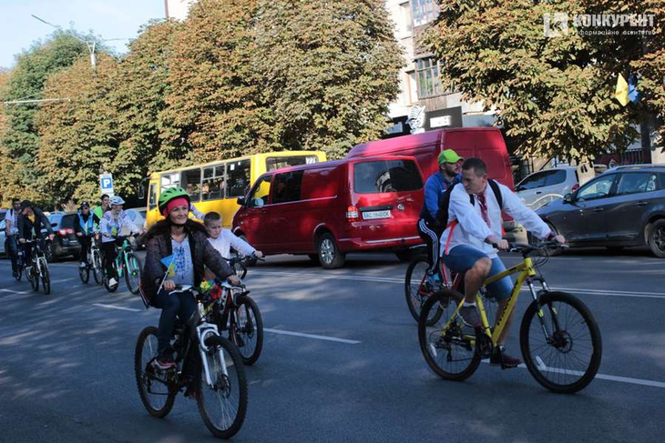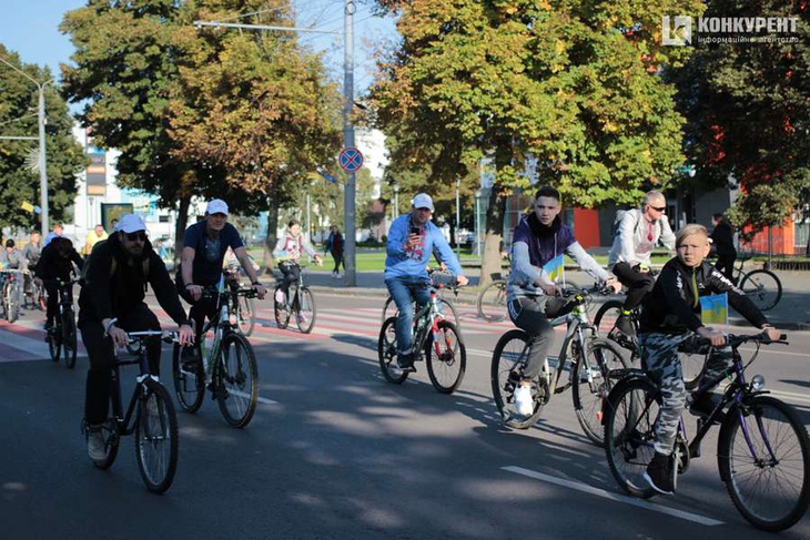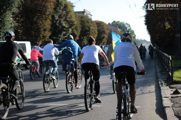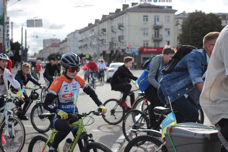 Їхали велосипедисти за маршрутом тролейбуса №15, а тому одразу після старту спустилися вулицею Винниченка, проїхали проспект Перемоги, Соборності, Молоді і Відродження. У супроводі колони були також поліцейські та швидка. На час велозаїзду рух по смугах за цим маршрутом перекрили.