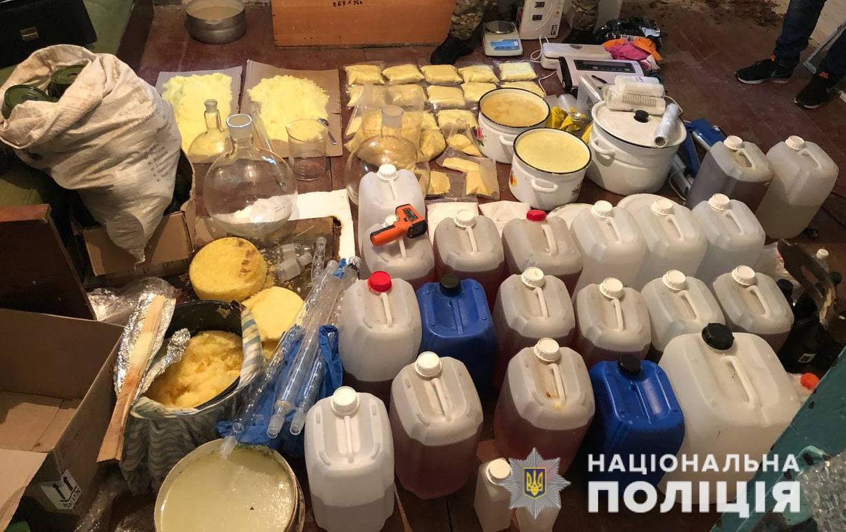 Поліціянти вилучили понад 30 кг хімічної речовини «фенілнітропропену», 160 л. прекурсорів (нітроетан, соляна та сірчана кислоти), амфетамін та кущі коноплі, вартістю понад 4 тис. гривень.