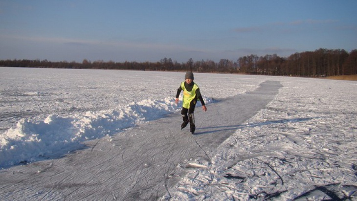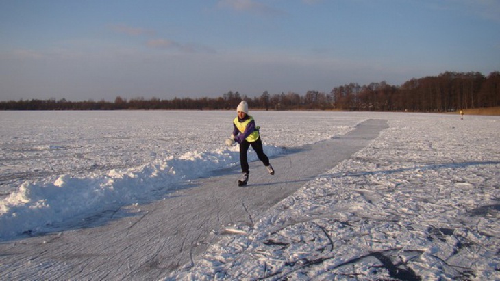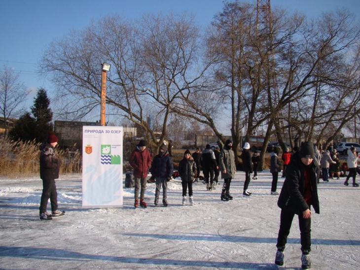 Цьогорічний січень порадував шачан зимовою погодою і морозом, який скував озера міцним льодом. Цим і скористалися активісти громадської організації смт Шацьк «Шаковель», створивши на одному з найпопулярніших у селищі озер – Великому Чорному – чудовий каток.