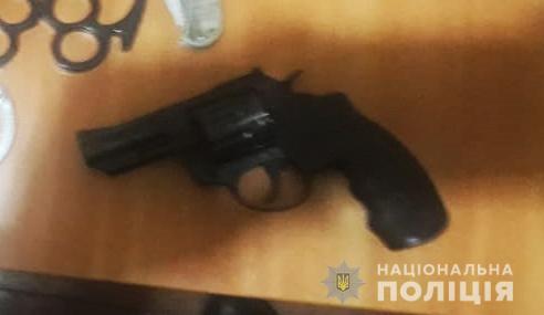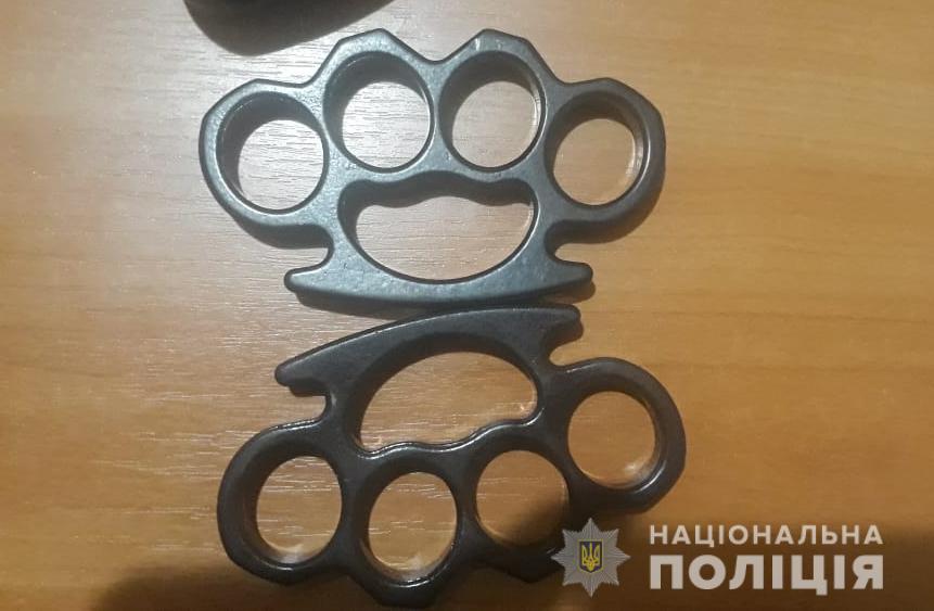 Їх затримали у порядку ст. 208 Кримінального процесуального кодексу України. У затриманих вилучили два газових балончики, два кастети та предмет, схожий на пістолет.