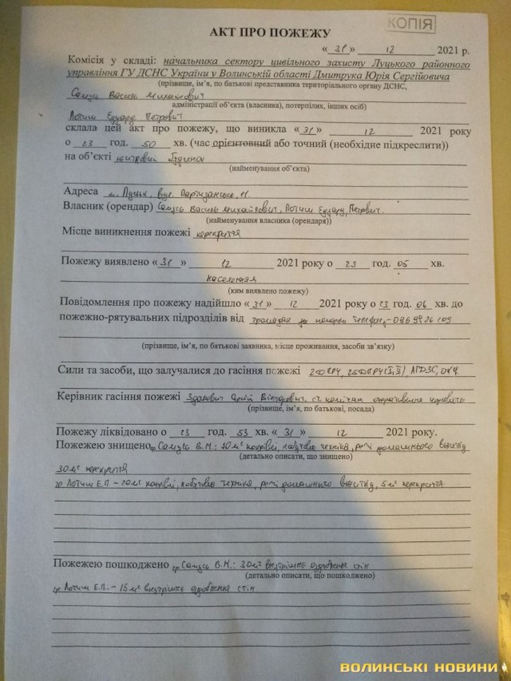 За десять хвилин до півночі, у той час, коли країна наповнювала келихи шампанським, а у небі спалахували святкові феєрверки, на вулиці Партизанській, 11 у Луцьку загорівся житловий будинок.
