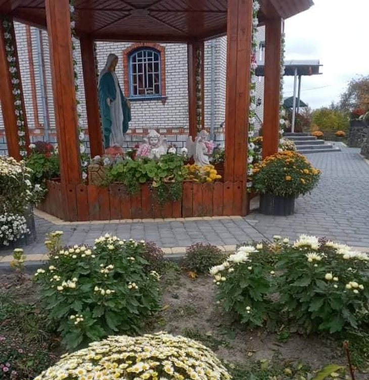 Братики, петунії, сульфінії, хризантеми цвітуть у різні періоди й досить тривалий час, тому різнобарв’ям наповнюють обійстя святині. Більшість з цих квітів Галина Плетінка вирощує біля свого дому, а тоді викопує й пересаджує на клумби, що біля церкви. А деякі квіти з плантації висаджує у горщики, які згодом виставляє на території біля храму та у приміщенні святині. Перевозить їх тачкою, або просить сусідів Тетяну і Сергія Курилів, аби ті запрягли коня й возом допомогли усе доставити. З цього року пані Галина планує вирощувати квіти на території біля храму, тим більше, що місця там вистачає.