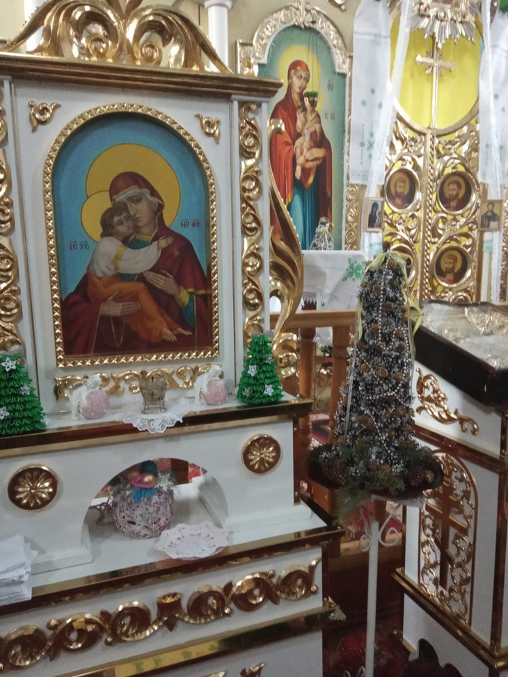 До зимових свят у Зорі прикрасили церкву теж, як завжди, дуже красиво. Встановили дві великі та кілька малих штучних ялинок. Великі новорічні красуні, які стоять по обидва боки тетраподу (стола, на якому розміщена головна ікона храму) оздобили кульками, які власноруч виготовила Галина Плетінка. Вона на полотні вишила оригінальні орнаменти, якими згодом огорнула придбані на ринку «заготовки» – пінопластові кулі. Так створила 170 великих, середнього розміру й малих ялинкових прикрас. Розпочала творити ще влітку.