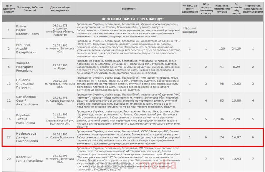 Підприємець з Ковеля Дмитро Невірковець переказав на підтримку партії «Слуга народу» на місцевих виборах у жотвня 2020 року 15 тисяч гривень, проте не мав права цього робити, оскільки перед цим отримував бюджетні кошти за виконані роботи. За це Ковельський міськрайонний суд оштрафував бізнесмена на 1700 гривень.