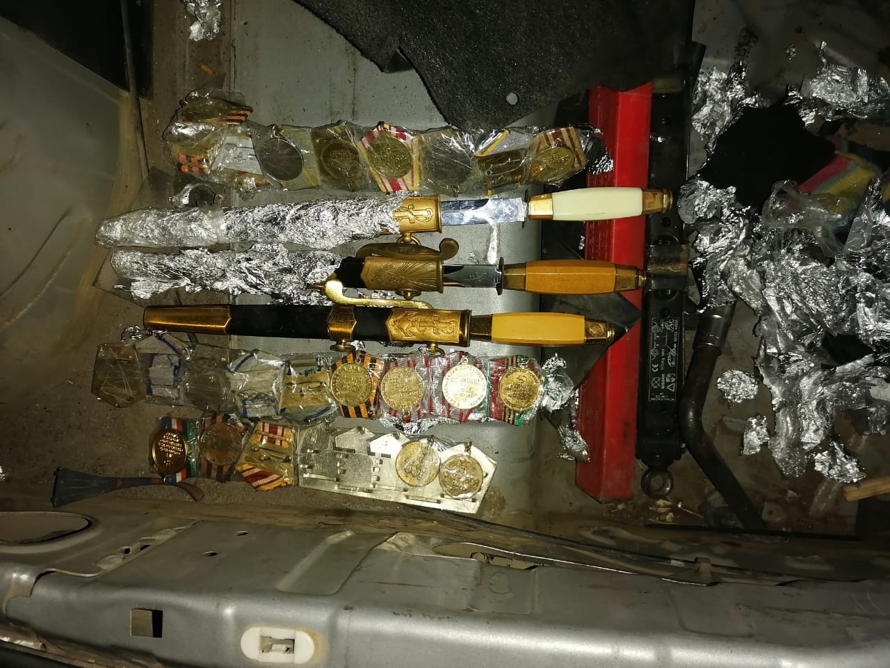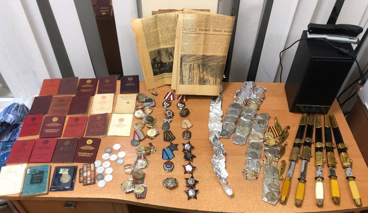 Офіцерські кортики морські, медалі та ордени часів Радянського Союзу іноземець сховав під обшивкою багажника. Крім того, правоохоронці знайшли в автомобілі 13 монет 1922-1925 років, радянські нагородні документи та друковані видання.