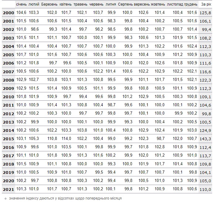 Порівняння індексу інфляції за 2021 рік з попереднім
