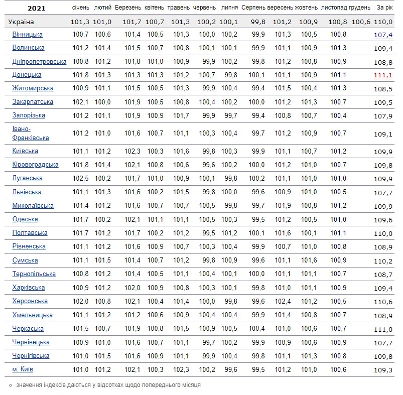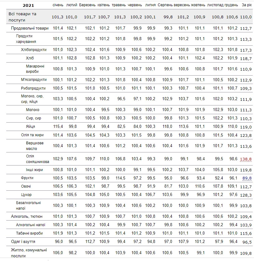 Індекс інфляції в Україні у грудні 2021 року склав 100,6%