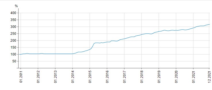 Динаміка індексу інфляції у 2021 році (наростаючим підсумком):