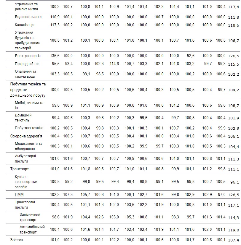 | грудень | 100,9 | 100,6 | -0,3 |