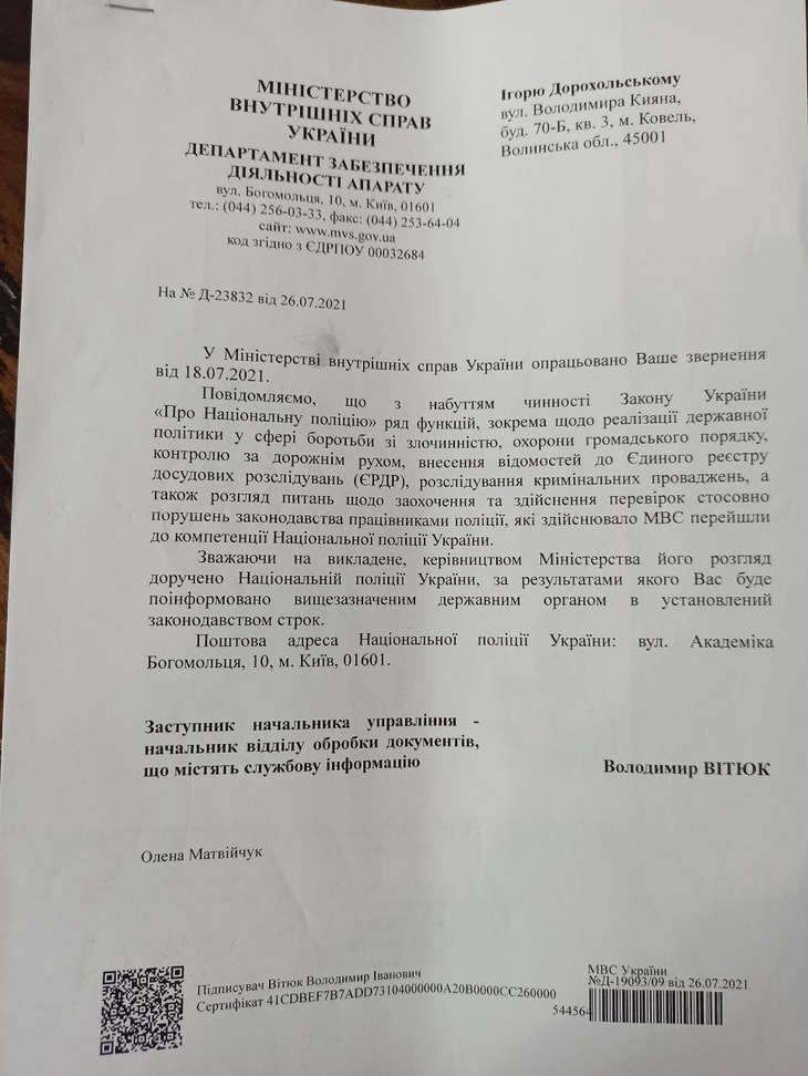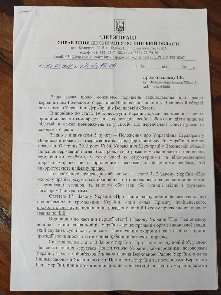 20.01.2021 року наказом ГУНП у Волинській області № 61/в мене повідомлено про неповну службову відповідність. Я був не згоден з такими рішеннями, то й звернувся з рапортом до Голови Національної поліції України генерала поліції другого рангу Ігоря Клименка в якому виклав своє бачення подій.