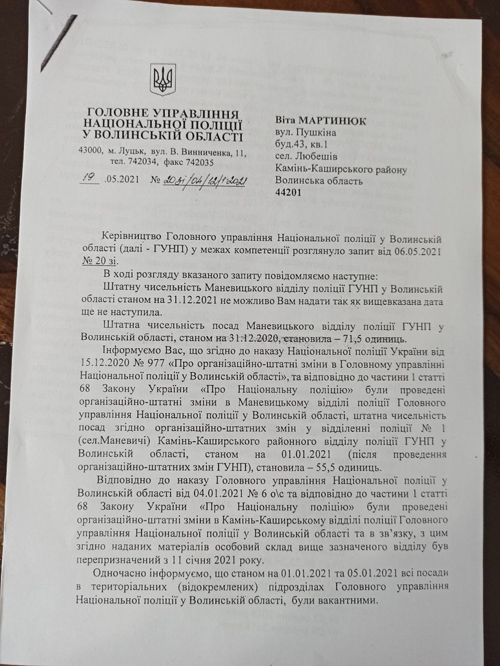 4. Маючи 9 вільних посад у Любешівському віідленні поліції, мені матері малолітньої дитини місця не знайшлося ближче за 70 км у сел..Маневичі.