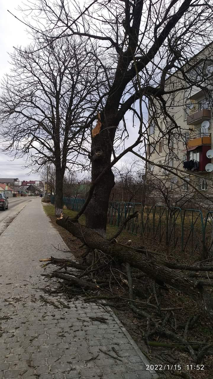 «Дерево ледве не прибило мою 4-річну донечку та батька. Дякувати Богу, дитина відбулась тільки переляком, а от татові не пощастило – у нього рвана рана на нозі, яку довелося зашивати. Зараз він перебуває у лікарні. Добре, що всі залишилися живі. Та сухі дерева як стояли роками, так стоятимуть й далі, наражаючи на небезпеку перехожих при кожному пориві вітру. Щоразу думаєш: встигнеш пройти під падаючими гілками чи ні. Хто має опікуватись цим питанням? Невже треба чекати, поки хтось загине, аби навести лад? Цього разу «пронесло», а наступного може статися трагедія. Тим паче, що цією дорогою щодня ходять люди на роботу та дітки в школу й садочок», – коментує ситуацію мама дівчинки та донька постраждалого чоловіка Тетяна Кисляк.