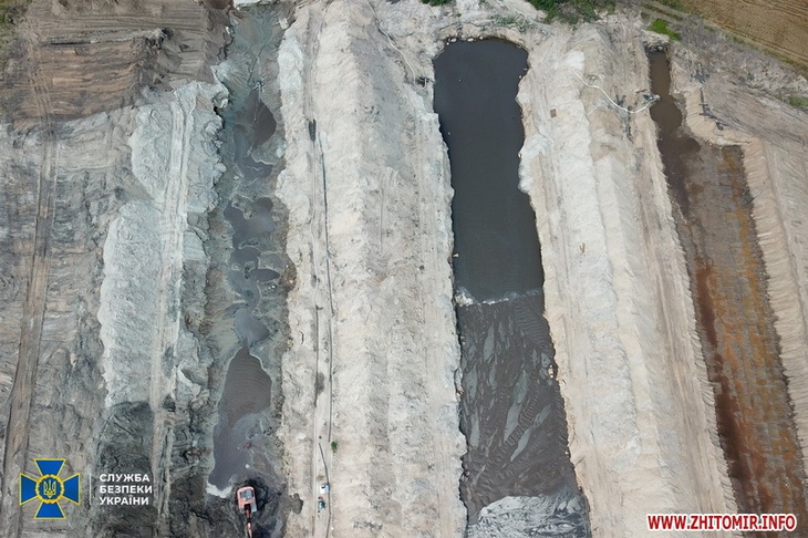 «Служба безпеки України, на виконання заходів щодо захисту економічного потенціалу держави, припинила незаконний промисловий видобуток бурштину на Житомирщині. Столичні комерсанти, придбавши на 5 років спеціальний дозвіл на користування бурштиноносними надрами, так поспішали «відбити» його вартість, що проігнорували етап дослідно-промислової розробки родовища, передбачений на першому році. Одразу перейшли до повноцінного промислового видобутку на експорт. Результатом таких дій є суттєве порушення функціонування місцевої мережі меліоративних каналів, підтоплення земель с/г призначення та незворотні порушення екосистеми», – йдеться у повідомленні.