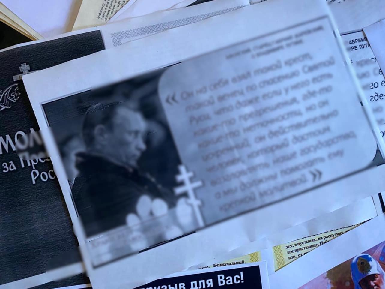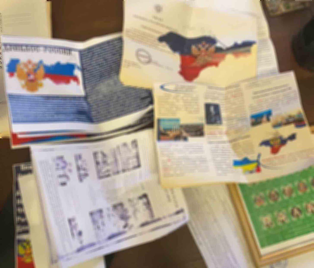 Слідчі поліції Вінницької області за оперативного супроводу працівників управління СБ України у Вінницькій області у вівторок, 11 жовтня, провели обшуки за місцем проживання та у релігійних спорудах, у ході яких вилучили докази злочинної діяльності: друковані матеріали зі зверненням путіна та російського патріарха до громадян України, визнання квазіреспублік «лнр та днр».