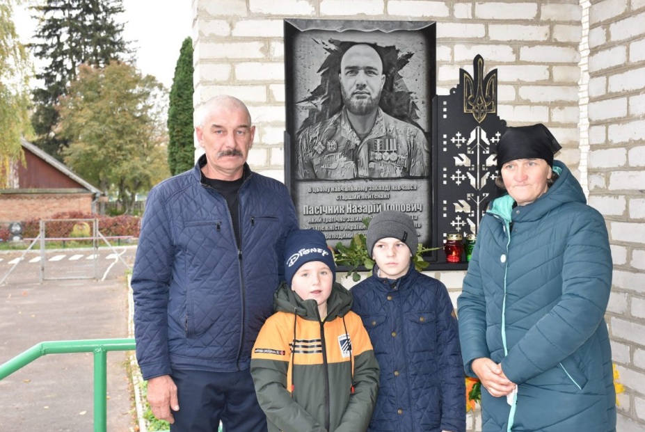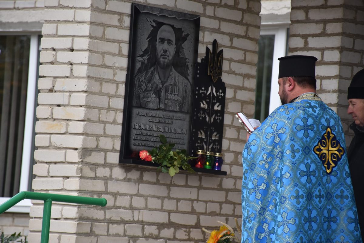 У Несвічівській гімназії Городищенської сільської ради Волині 14 жовтня відкрили меморіальну дошку загиблому в російсько-українській війні старшому лейтенанту ЗСУ Назару Пасічнику.