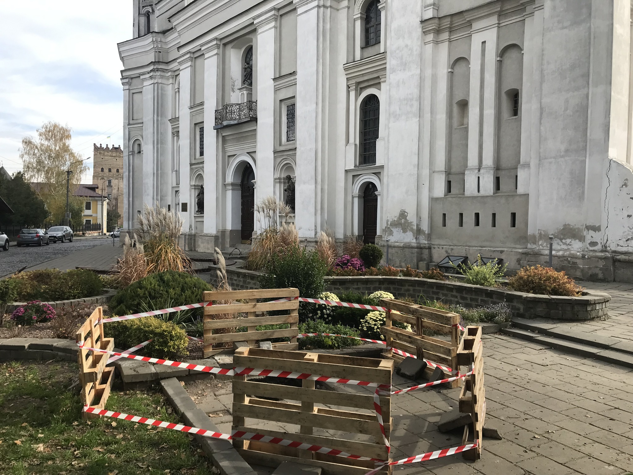 На пішохідній зоній на ділянці між Кафедральний Собором Святих Апостолів Петра і Павла у Луцьку та Будинком Косачів утворилося провалля.