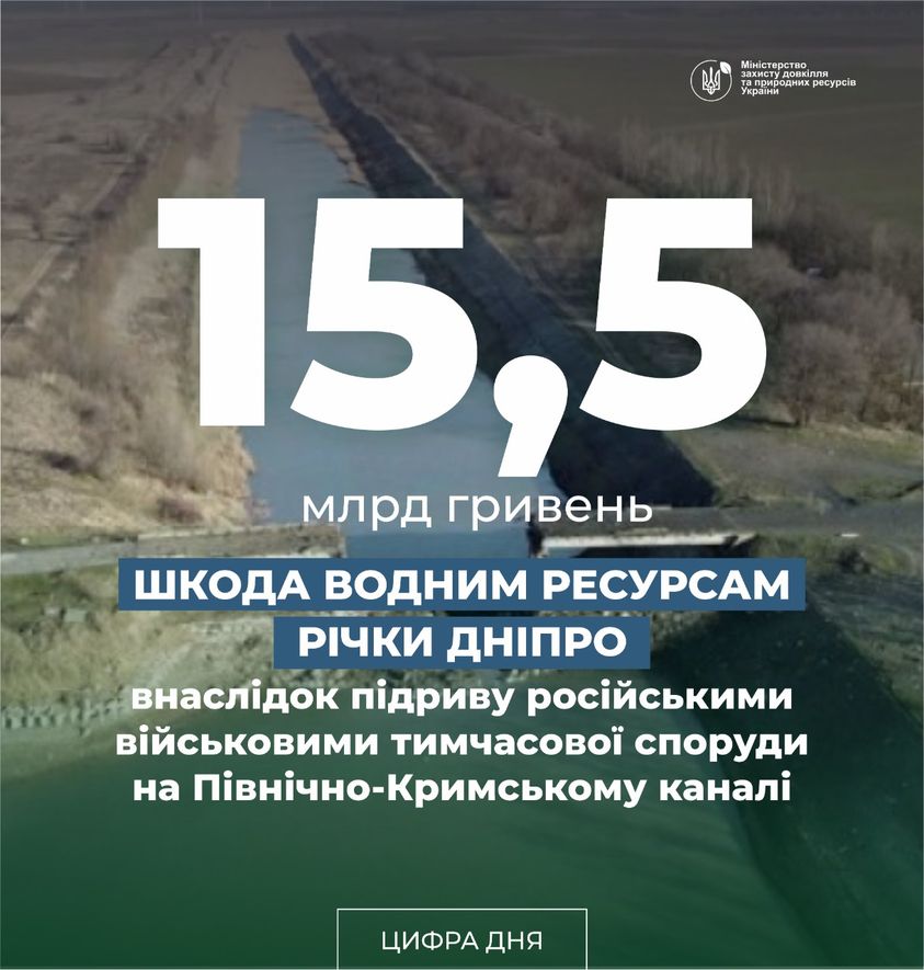 "Після того, як росіяни наприкінці лютого підірвали тимчасову споруду, яка перекривала доступ дніпровської води до окупованого Криму, вода з Дніпра продовжує поступати у канал... Росія вже вкрала з Дніпра понад 4 млн кубометрів води", - йдеться у повідомленні.