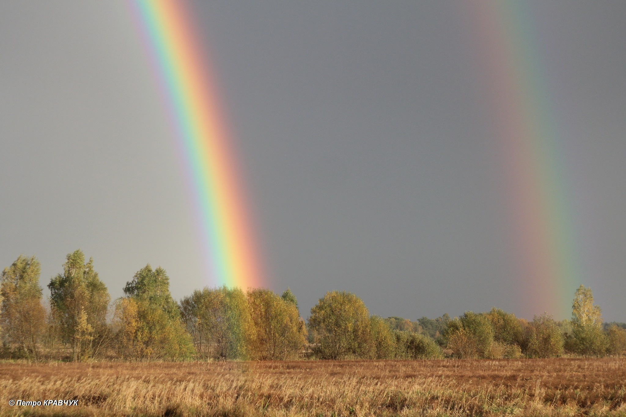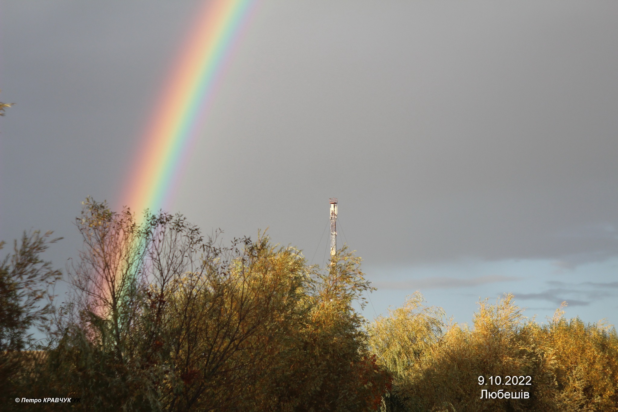 «Літо минуло без веселок, а осінь уже вкотре радує веселками. А сьогодні (9.10.2022) – подвійною. Вона так яскраво і дуже довго сяяла над Любешовом. Я, принаймні, такої тривалої і яскравої подвійної веселки більше не пригадую», – йдеться у дописі.