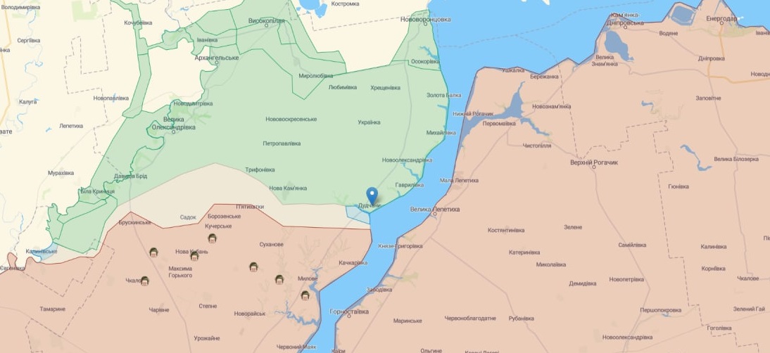 Також, за даними карти, у сірій зоні тепер знаходяться місто Снігурівка (Миколаївська область) та село Правдине (Херсонська область).