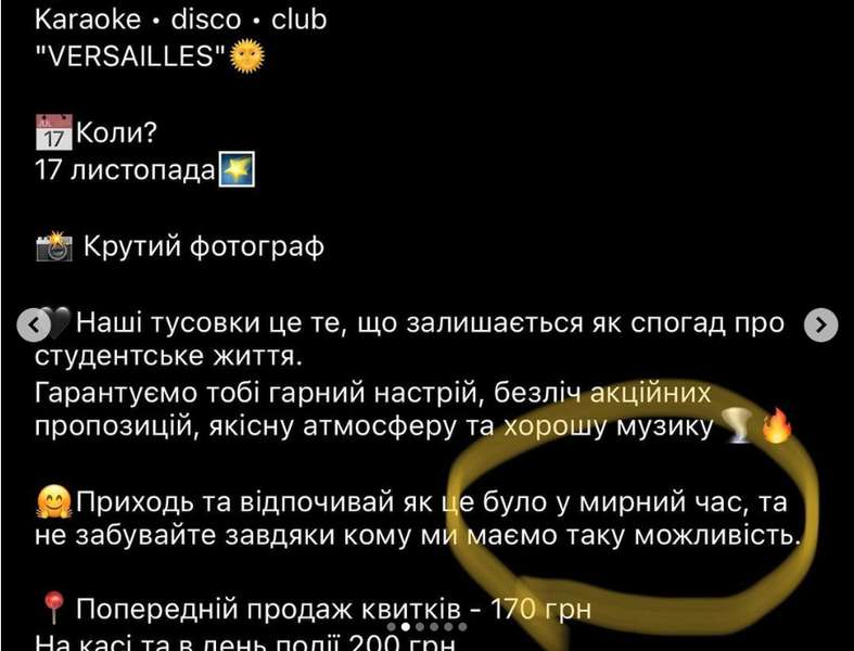 До слова, вхідний квиток на тусівку коштував 170 гривень за передпродажем, і 200 гривень вже під час вечірки.