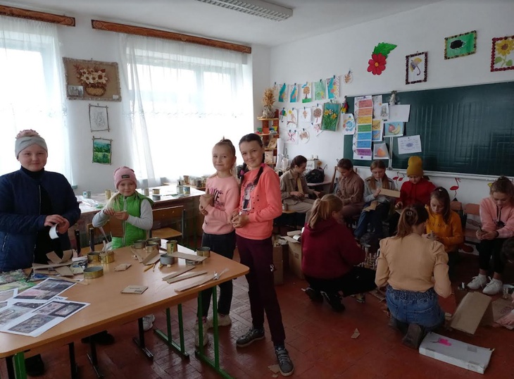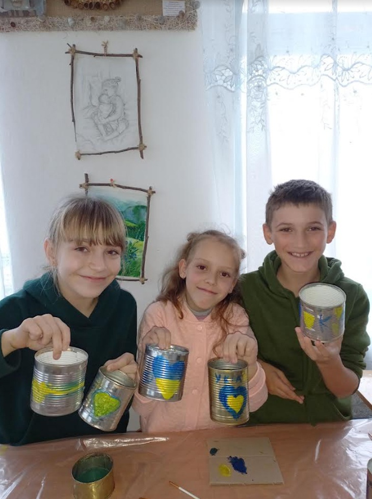 «Мої дві учениці 9-го класу Дарина Кондратович з молодшим братом Арсеном та Вікторія Рибак (вони з Волиці) зібрали 150 бляшанок. Самостійно їх підготували та зробили заготовки з картону. Вони великі молодці, я ними дуже пишаюся. Кожен їх малюнок і підпис на бляшанці — це шедевр. Наприклад: “палаюча русня”, “вогник перемоги” і багато інших креативних малюночків. Багато заготовок робимо з дітьми в школі: і в укриттях під час тривоги, і так після уроків. Працюють і старші класи, і молодші. Діти з великим бажанням допомагають,бо розуміють як це важливо», — розповідає їх наставниця Наталія Ярошик.