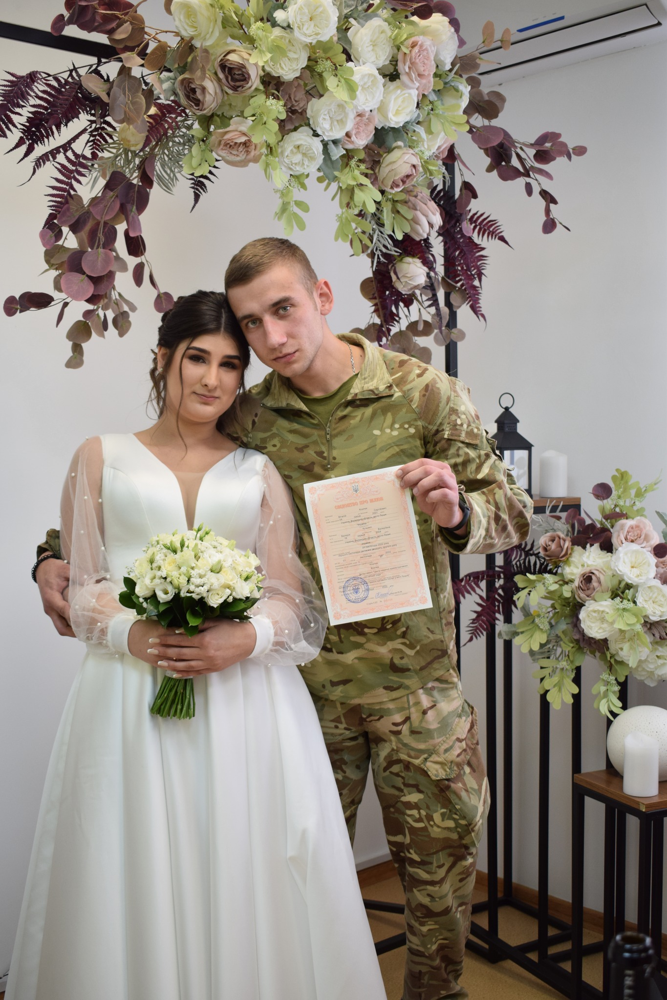 У вівторок, 1 листопада, у ЦНАПі міста Луцька поєднав долю з чарівною нареченою Валерією військовослужбовець Збройних Сил України Віталій.