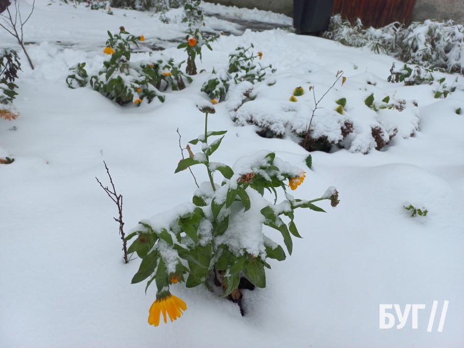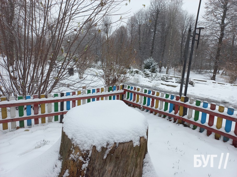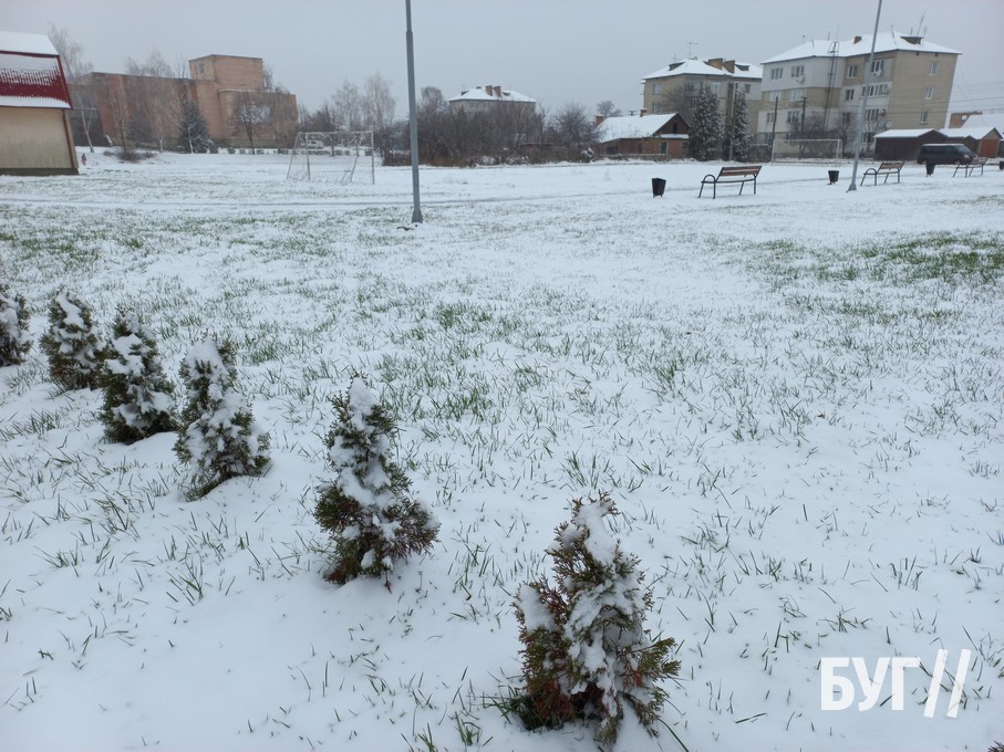 Хоч за календарем ще осінь, але зима вже потроху вступає у свої володіння. Рясний сніг одягнув селище у біле. На деревах, кущах, траві, дорозі та дахах будинків з’явилась снігова ковдра, - пише Буг.