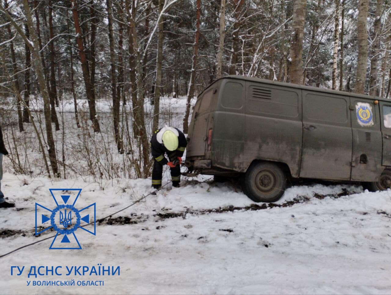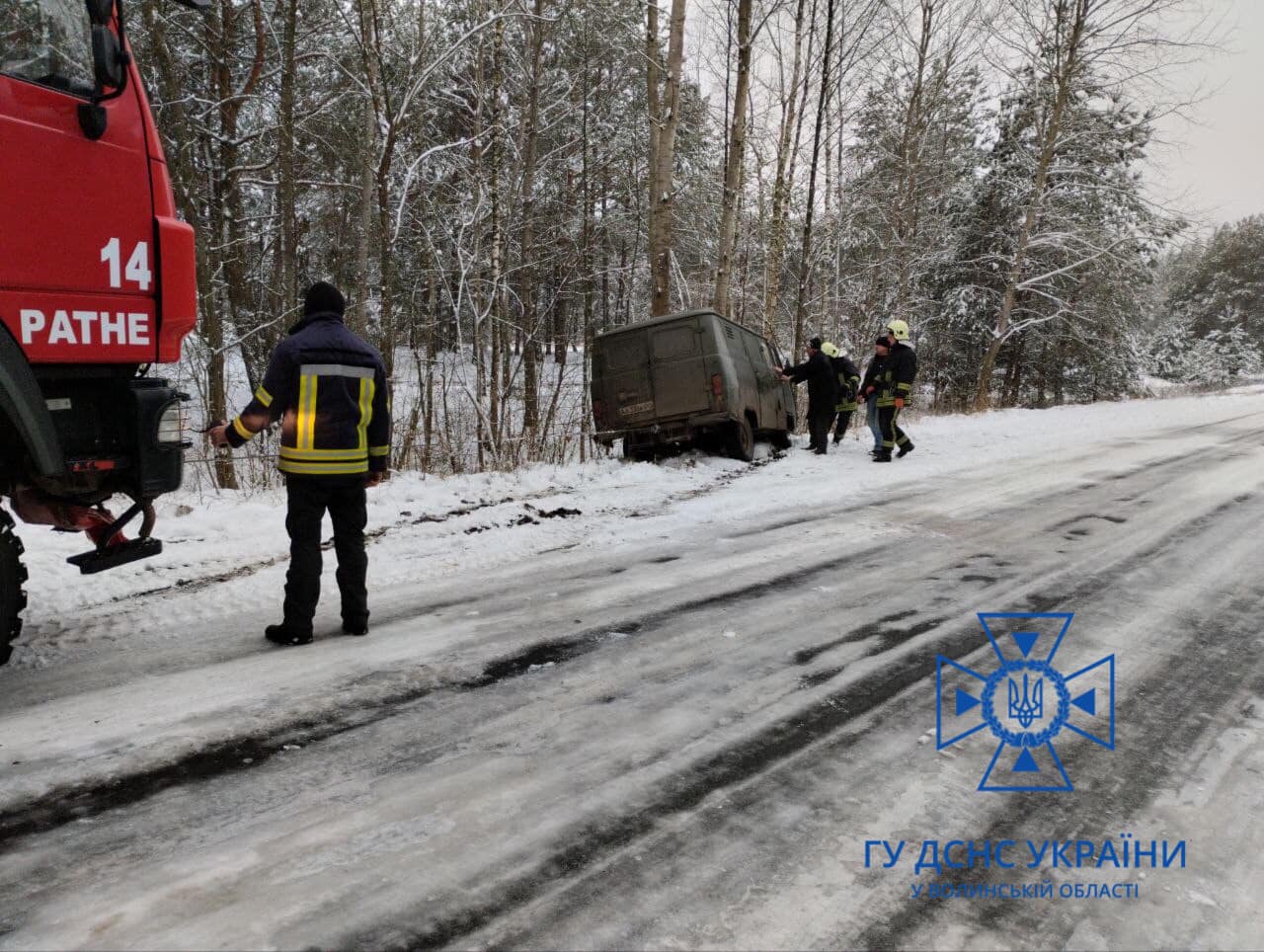 Вранці у суботу, 26 листопада, до служби 101 надійшов дзвінок з проханням допомогти працівникам Укрпошти - їх автомобіль з’їхав у кювет на слизькій ділянці дороги місцевого значення.