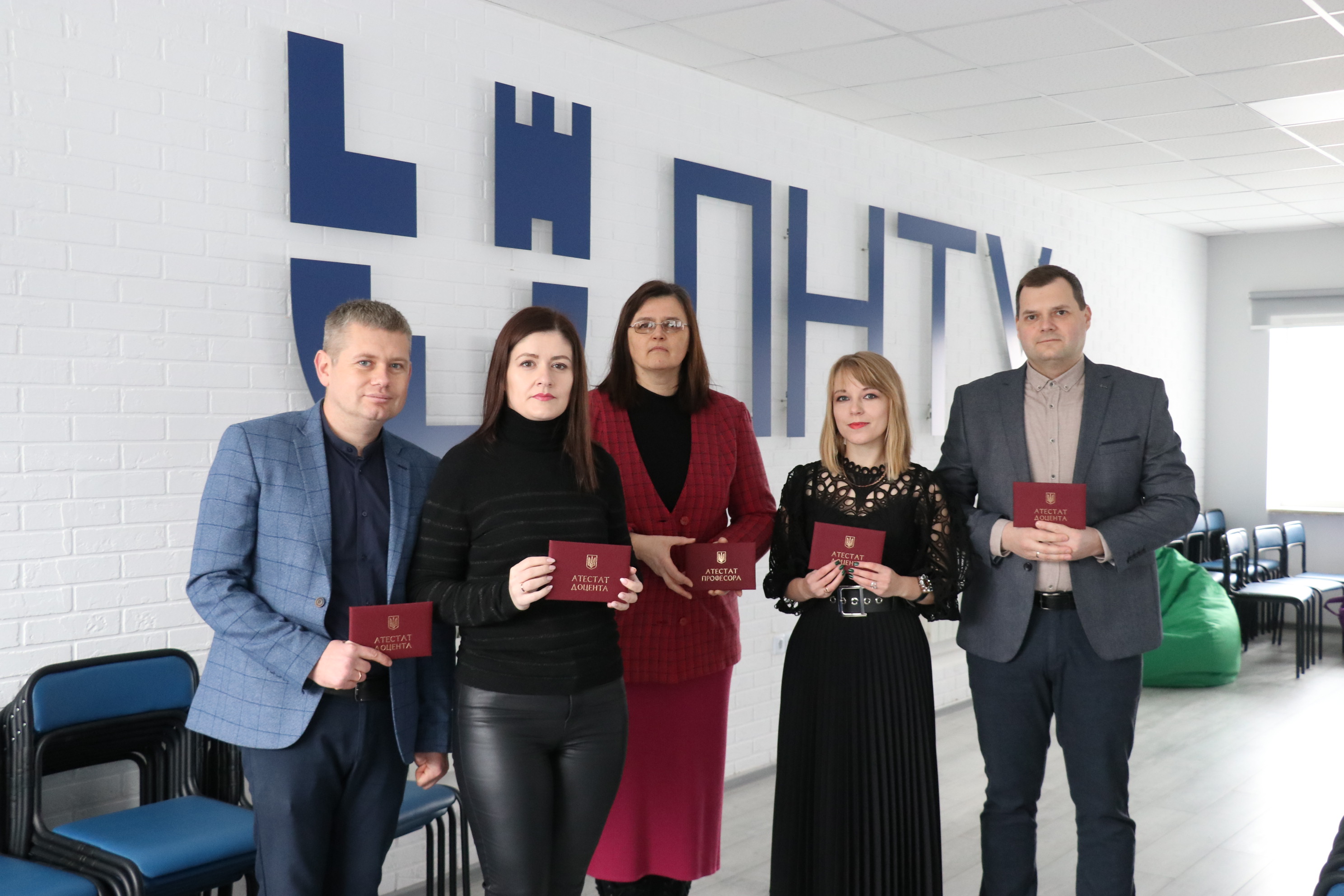 Атестати доцента отримали: Ніна Давиденко по кафедрі комп’ютерних наук; Дар’я Гордєєва по кафедрі комп’ютерної інженерії та кібербезпеки; Юрій Лук’янчук по кафедрі комп’ютерних наук; Олена Суринович по кафедрі інженерії програмного забезпечення; Оксана Дзюбинська по кафедрі будівництва та цивільної інженерії та Віталій Процюк по кафедрі будівництва та цивільної інженерії.