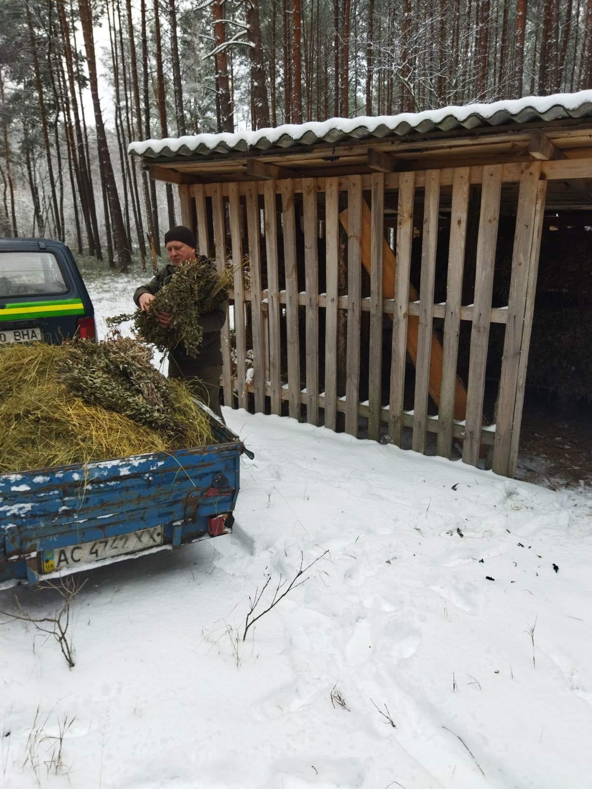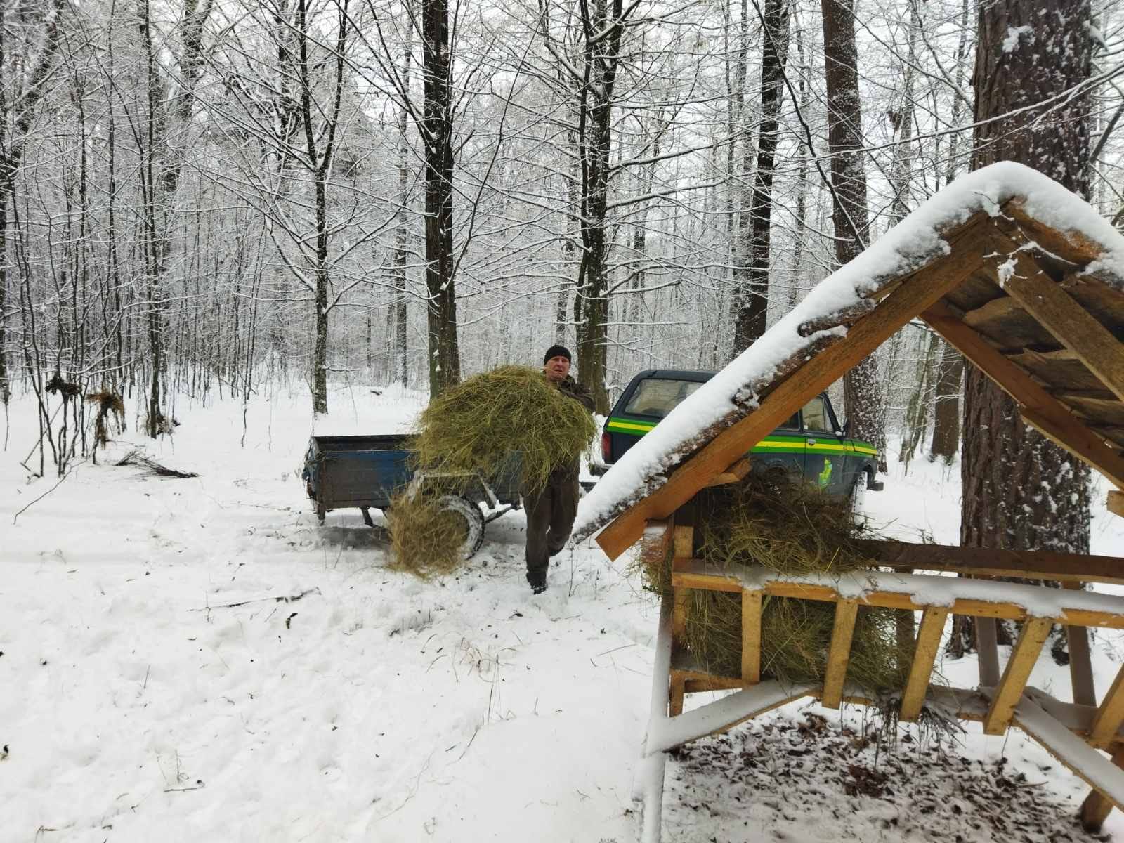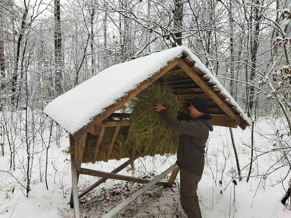 Щоб допомогти тваринам, були викладені заздалегідь заготовлені кормові віники та сіно. Підгодівля проводиться на спеціально підготовлених майданчиках, у малодоступних для людей місцях, де тварини почувають себе спокійно.