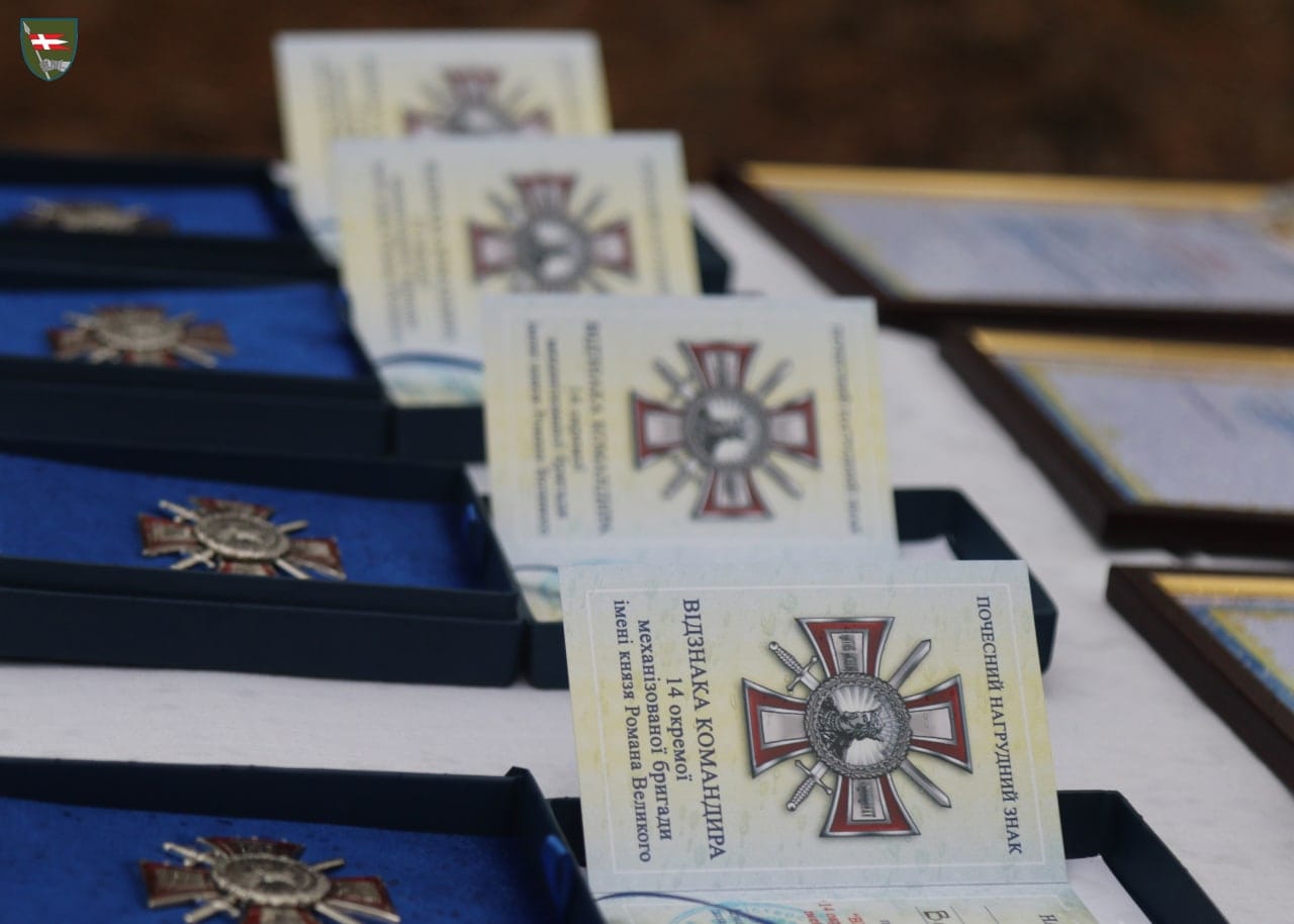 Командир бригади вручив воїнам-артилеристам Відзнаки командира 14 окремої механізованої бригади імені князя Романа Великого з артилерії, схвалення, Відзнаки артилериста, цінні подарунки.