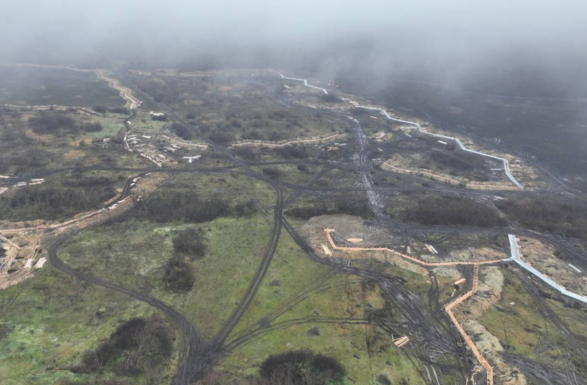 Російська армія окопується та будує оборонні споруди в районі селища Володимирівка неподалік від Бахмута.