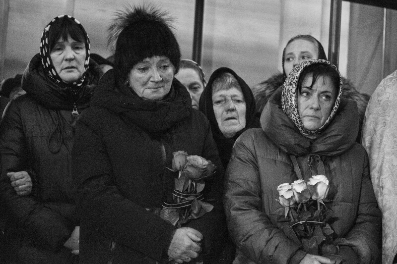 По завершенню богослужіння домовину з тілом Героя під звуки дзвонів і солдатської сурми пронесли Театральним майданом. Біля фотостенду «Герої Небесної Сотні – Загинули за єдність України» скорботна процесія зупинилася і виконала Державний Гімн.