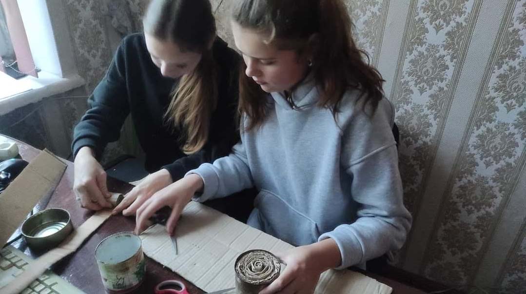 Як розповідає вчителька, виготовляють окопні свічки у металевій тарі з-під консервів. Для цього тришаровий гофрований картон ріжуть на смужки, скручують, після чого вкладають у бляшанку. У підготовлені ємності заливають парафін чи віск. Так, баночки приносили педагоги ліцею, жителі села, а дружина настоятеля місцевого храму Пресвятої Богородиці Катерина Кузьмич надала віск. До роботи, зокрема, долучалися учні 8-А класу.