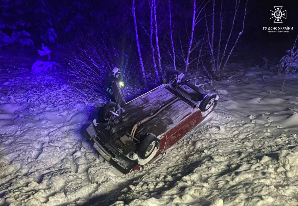 Уночі 13 грудня на трасі М-07 «Київ-Ковель-Ягодин» біля села Мар’янівка Ковельського району злетів у кювет й перекинувся на дах легковий автомобіль.