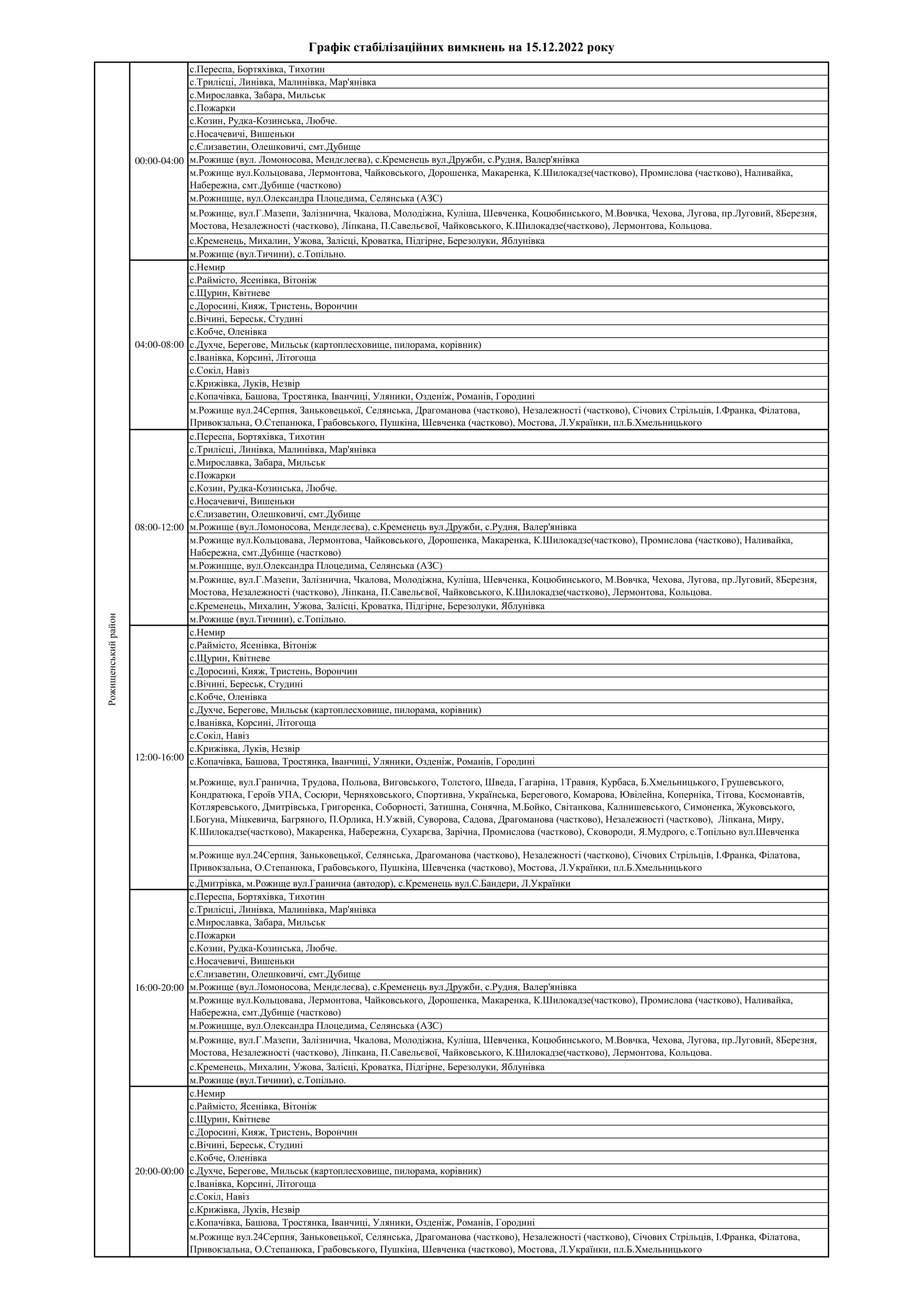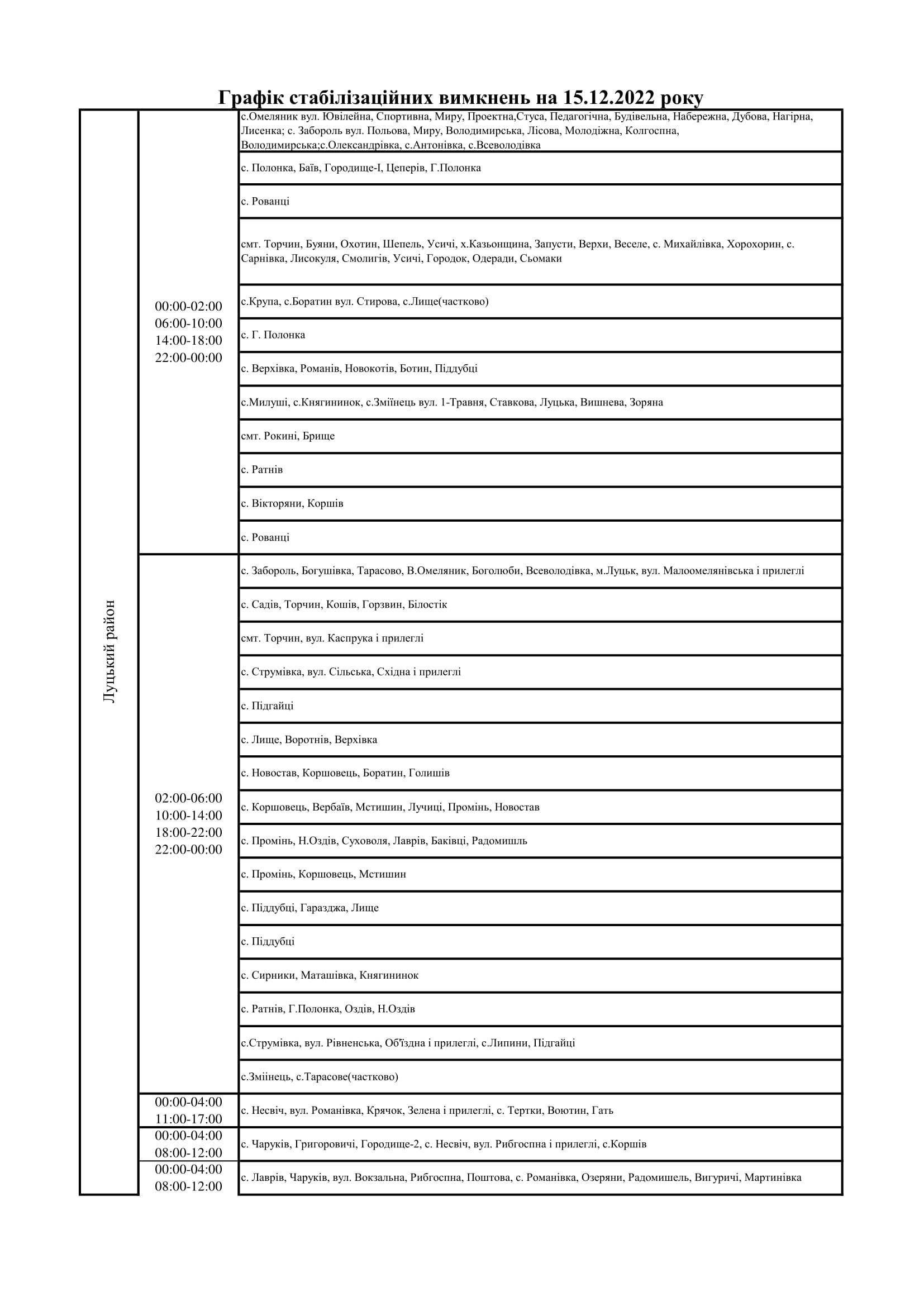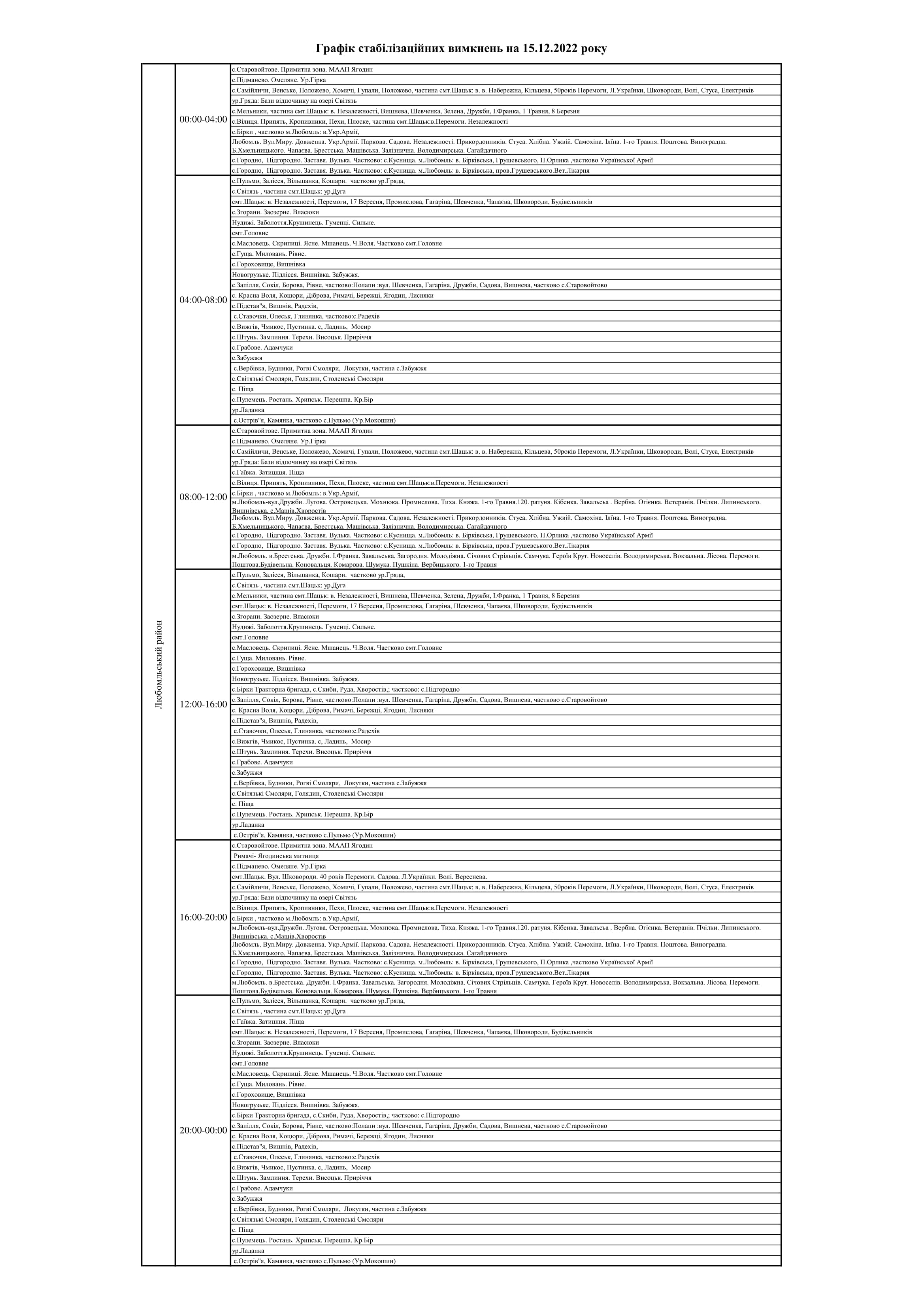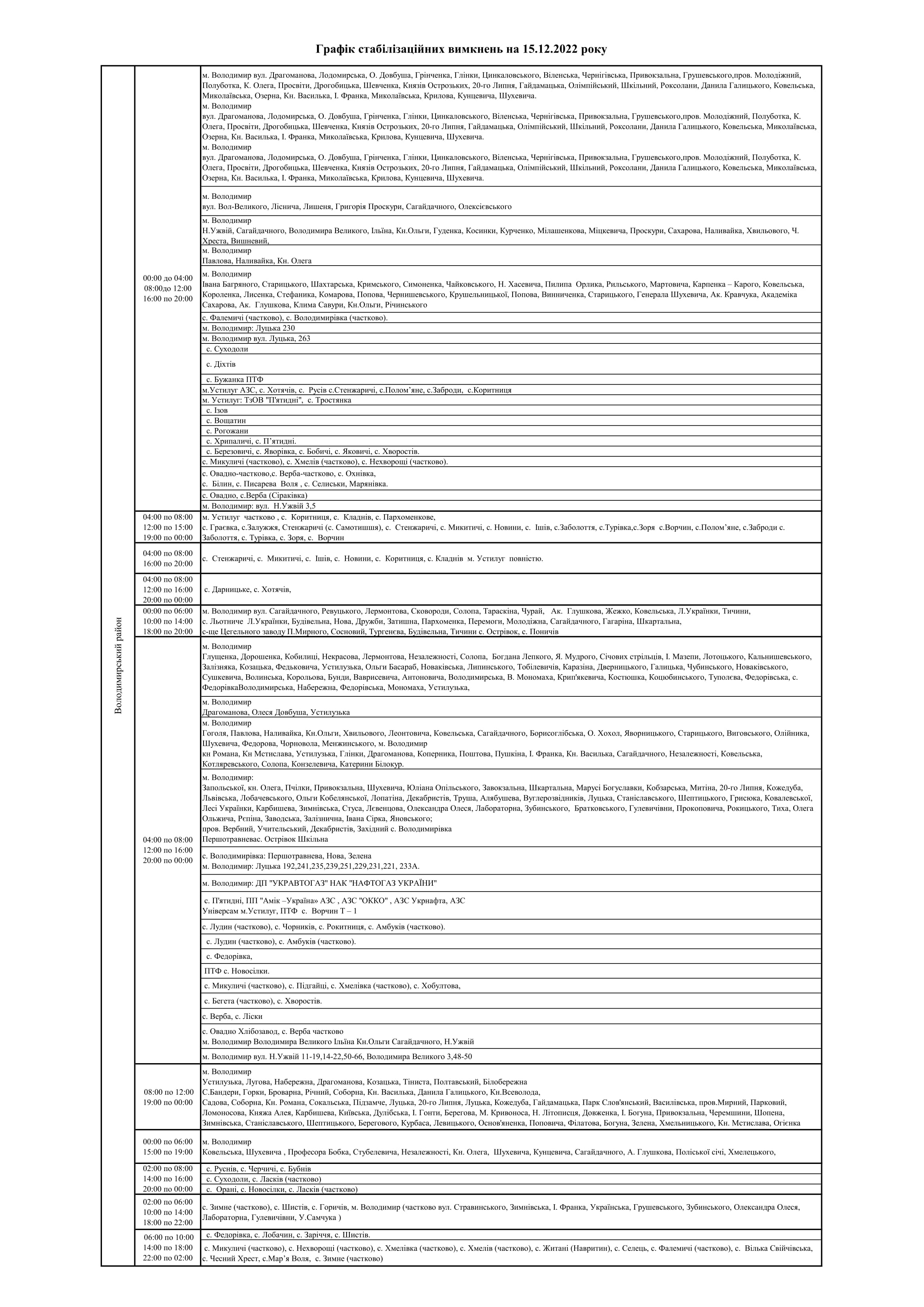 У четвер,15 грудня, на Волині діятимуть графіки стабілізаційних вимкнень електроенергії.