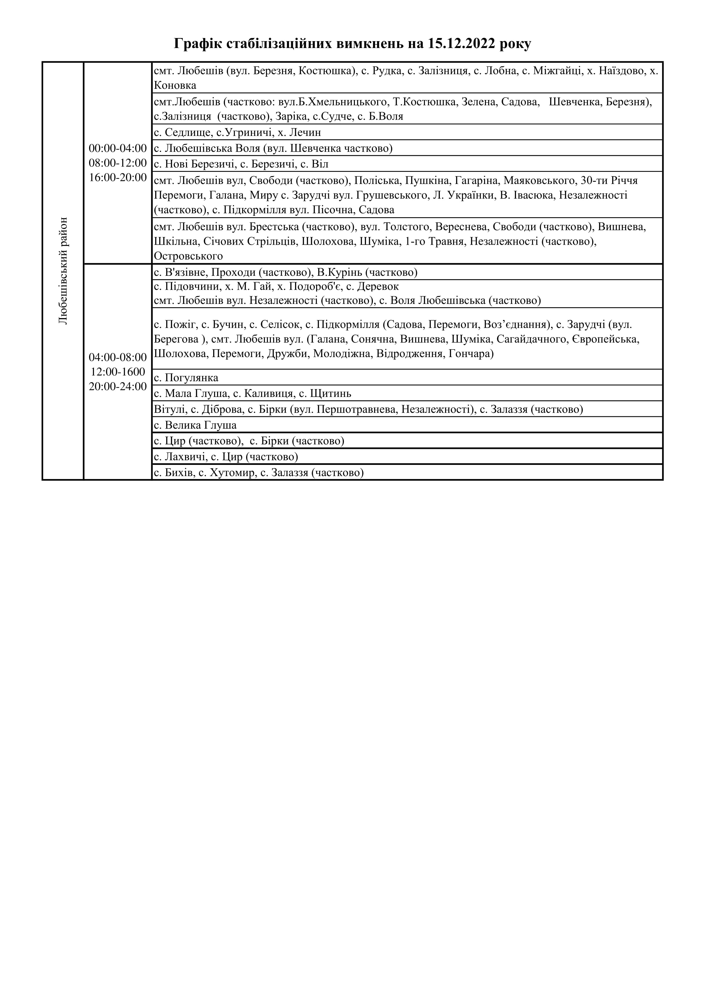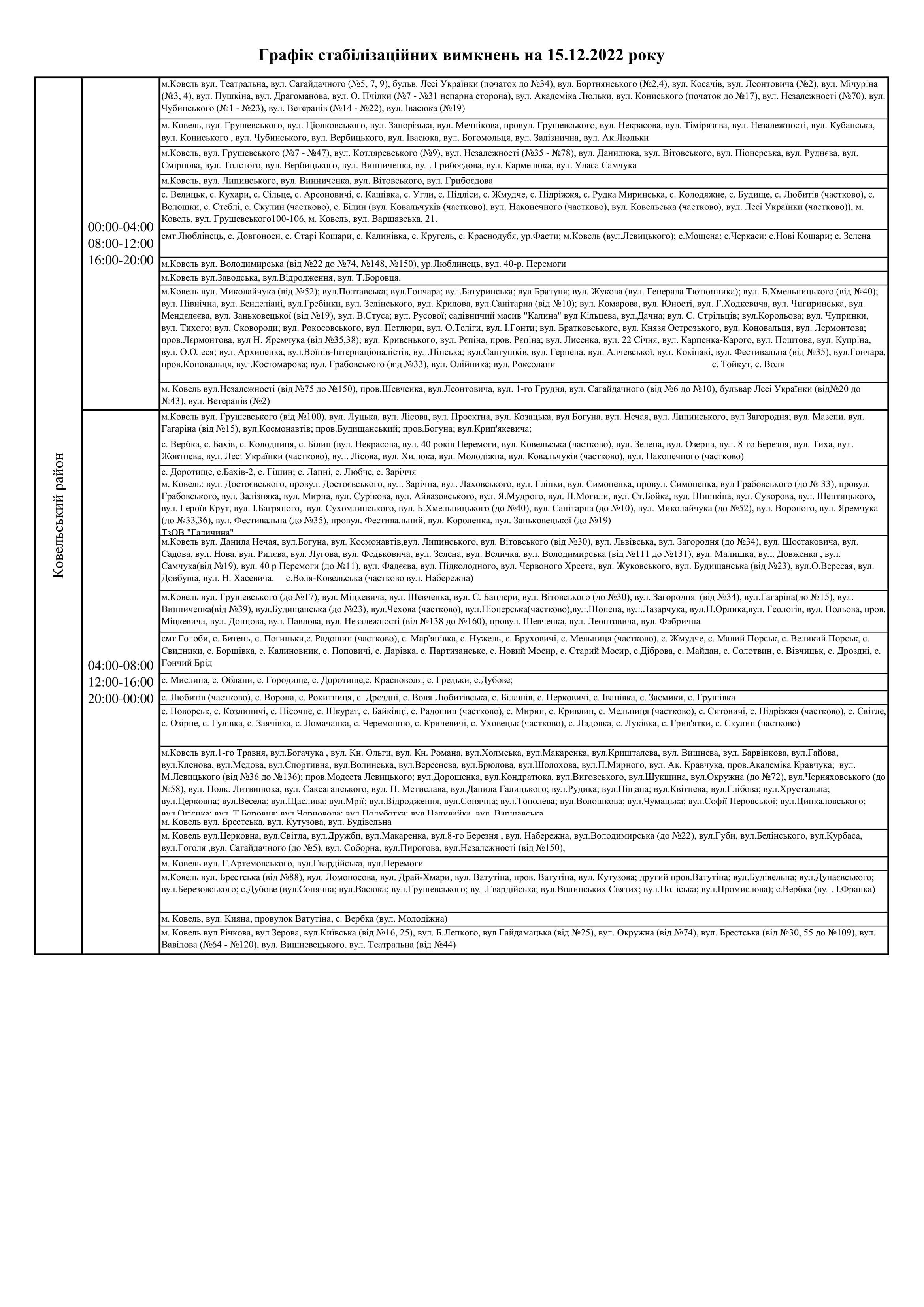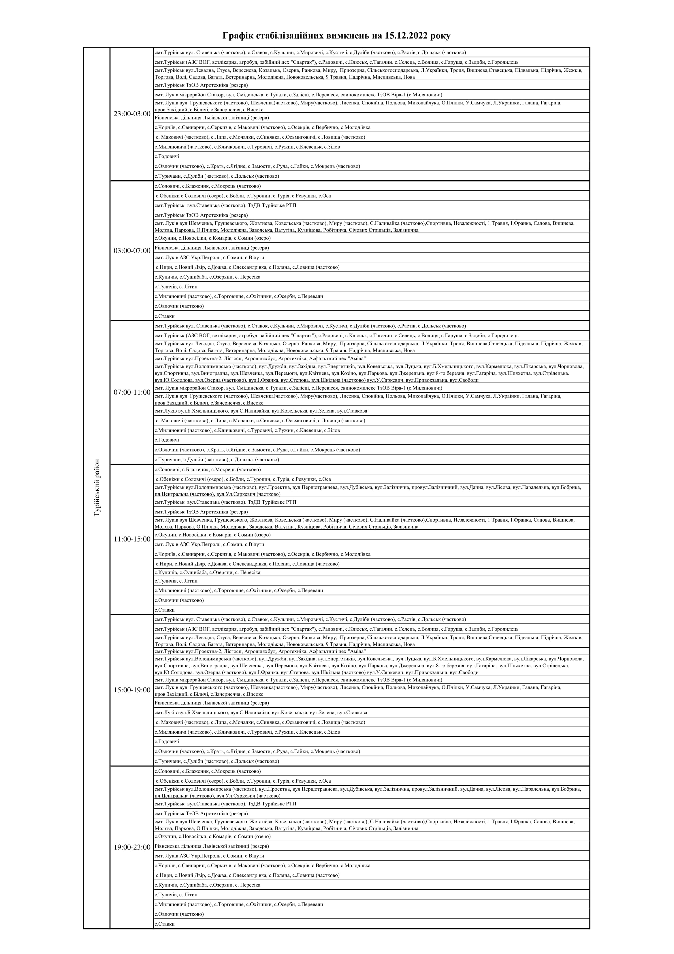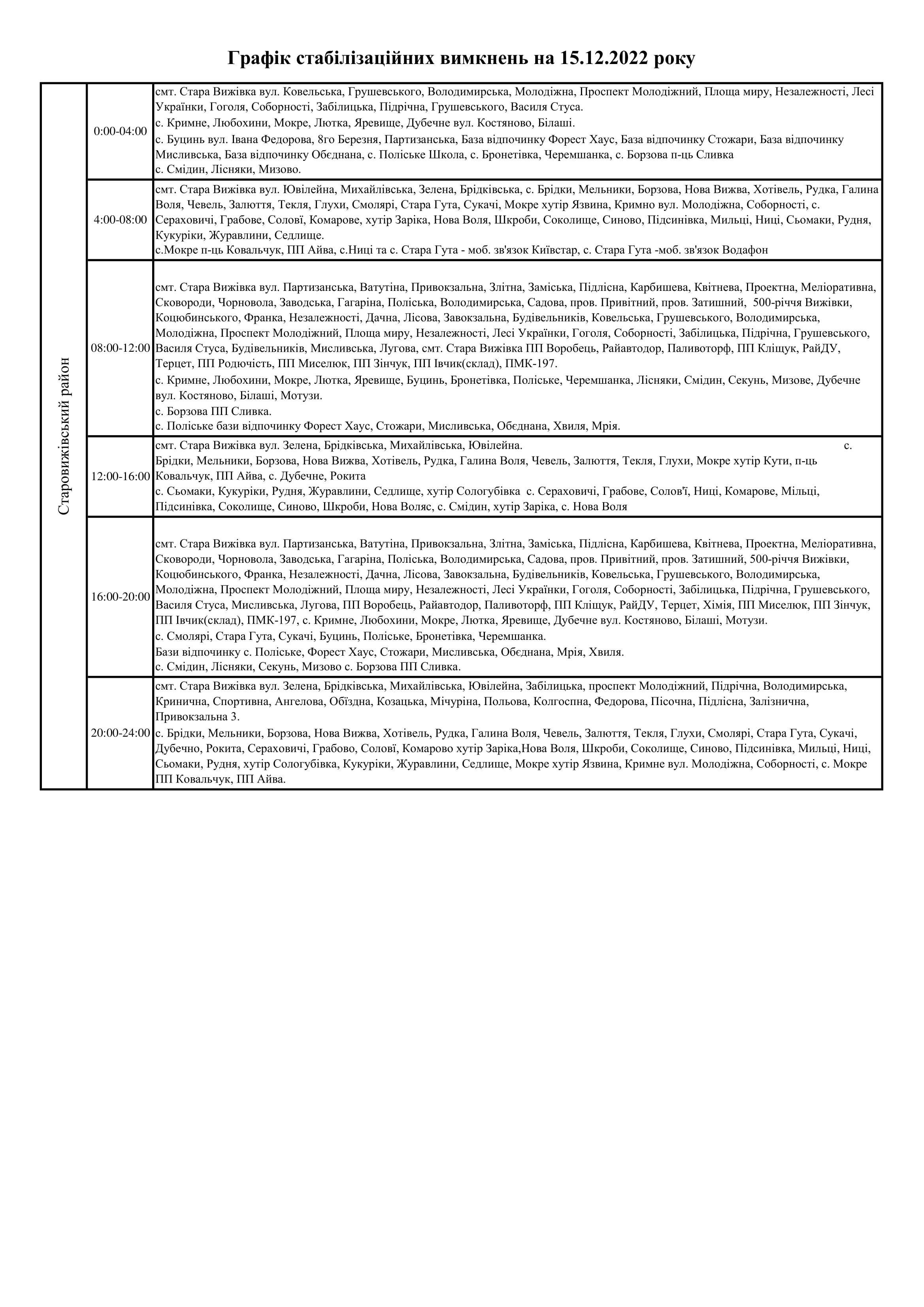 У четвер,15 грудня, на Волині діятимуть графіки стабілізаційних вимкнень електроенергії.