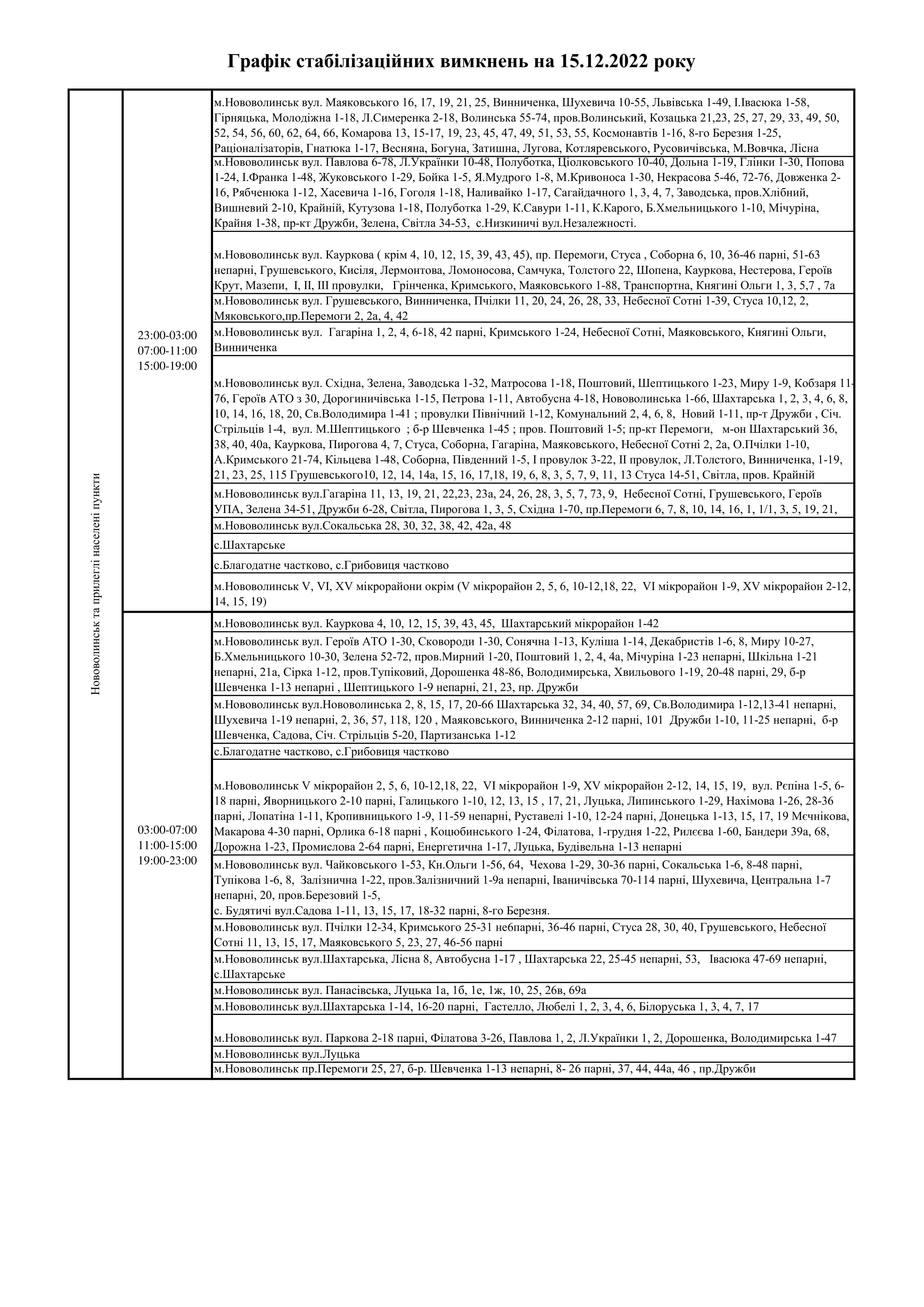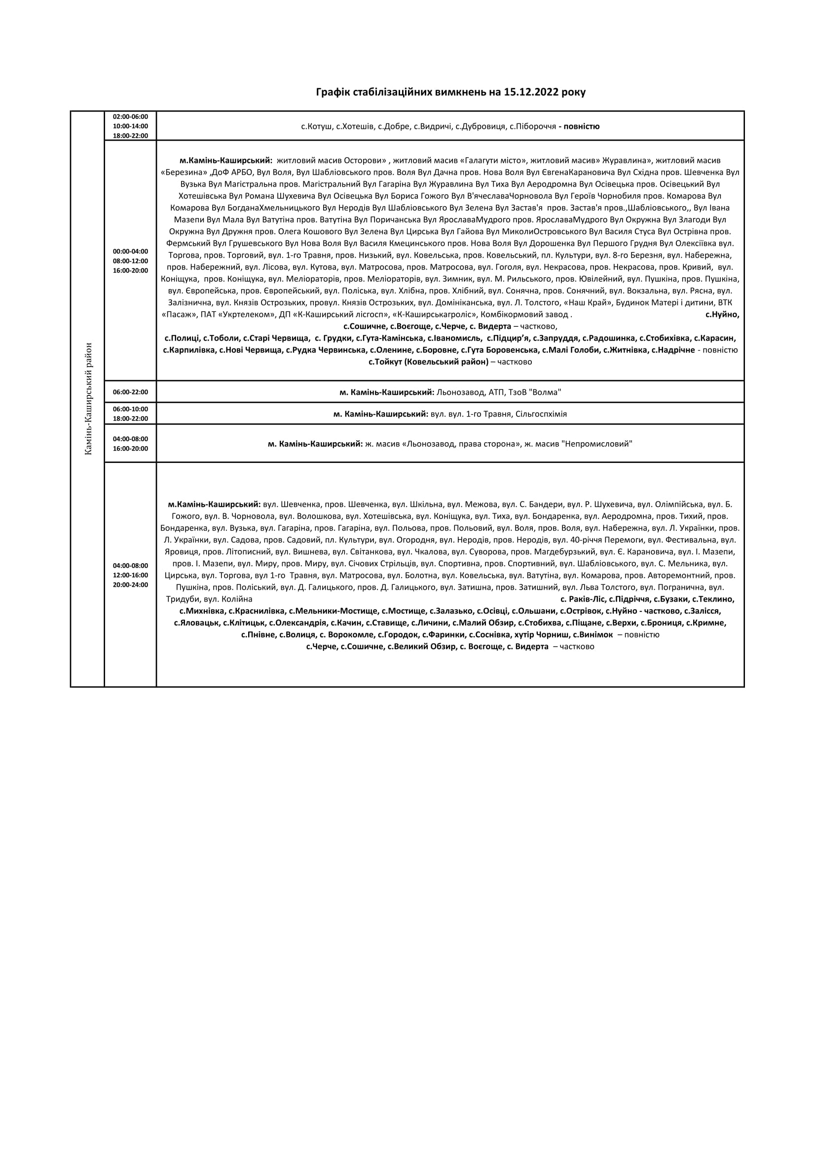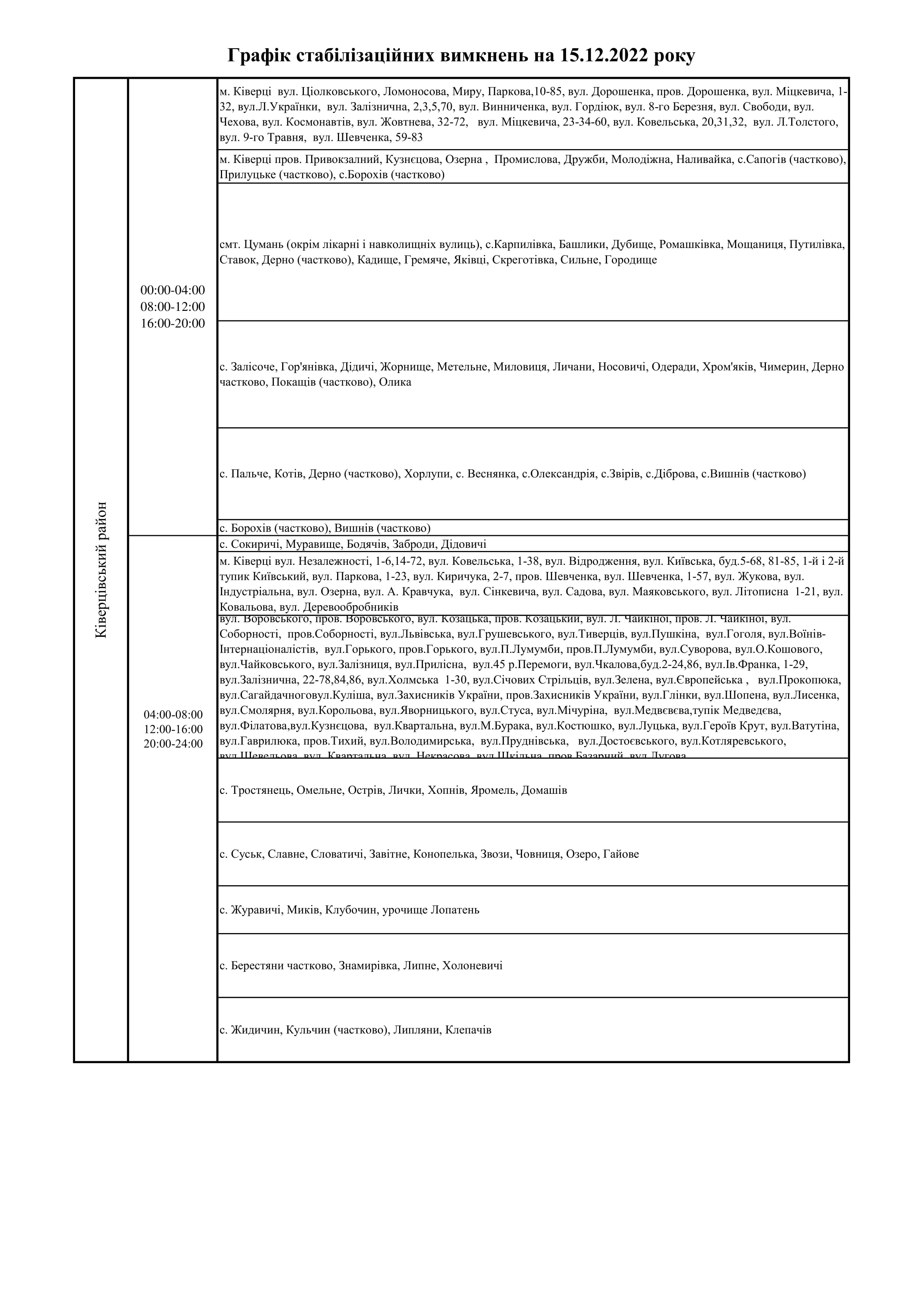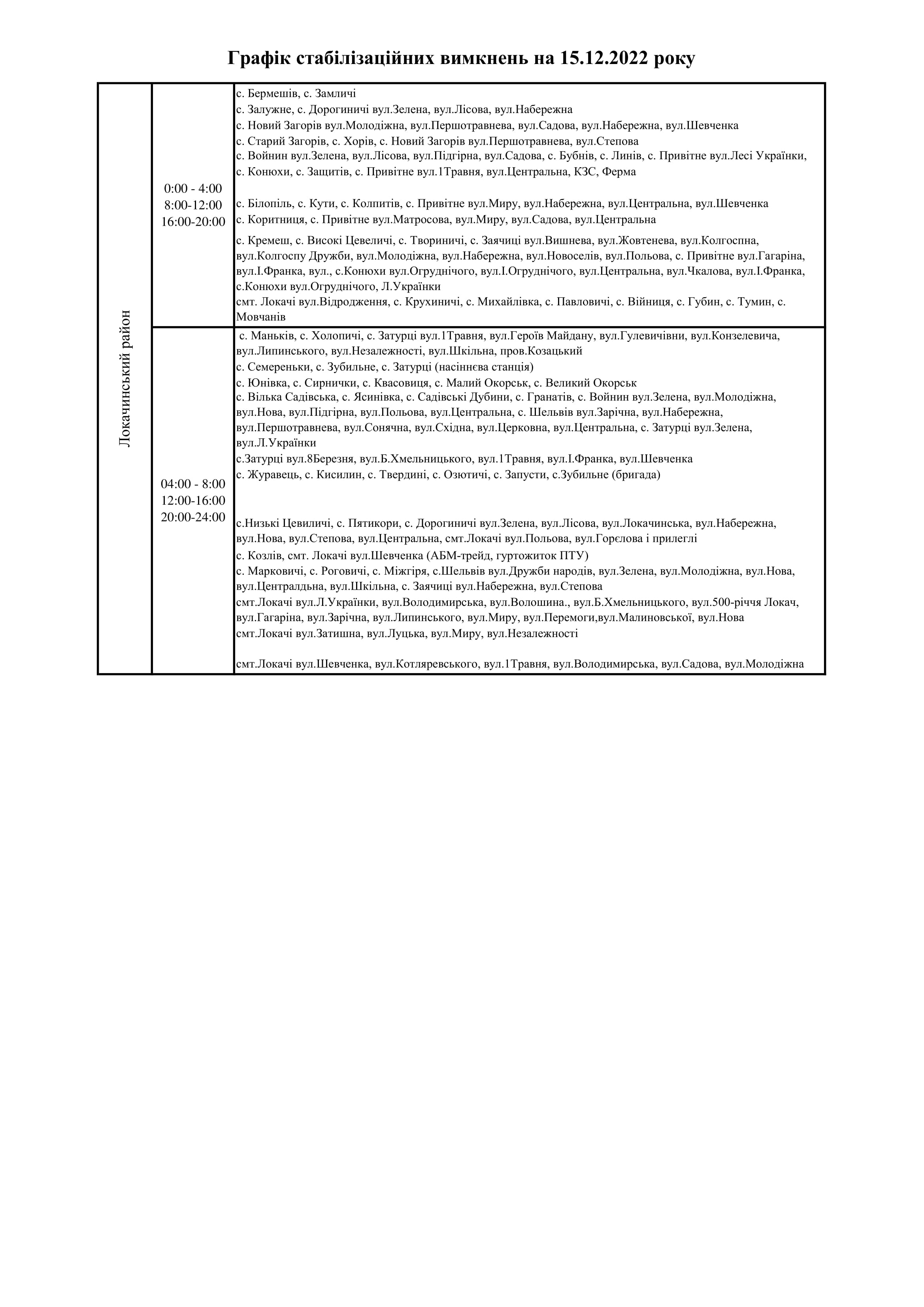 У четвер,15 грудня, на Волині діятимуть графіки стабілізаційних вимкнень електроенергії.