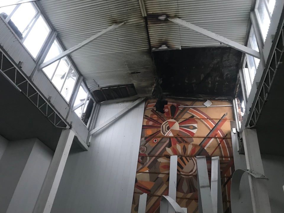 Вогонь охопив покрівлю павільйону та поширився на внутрішнє приміщення, де зазвичай продають молочну продукцію.