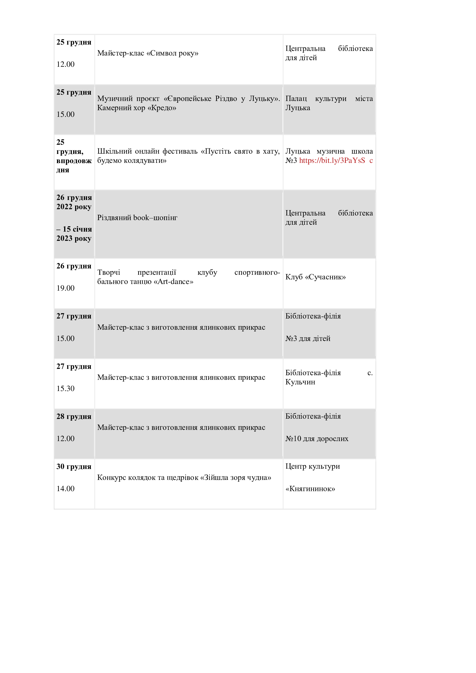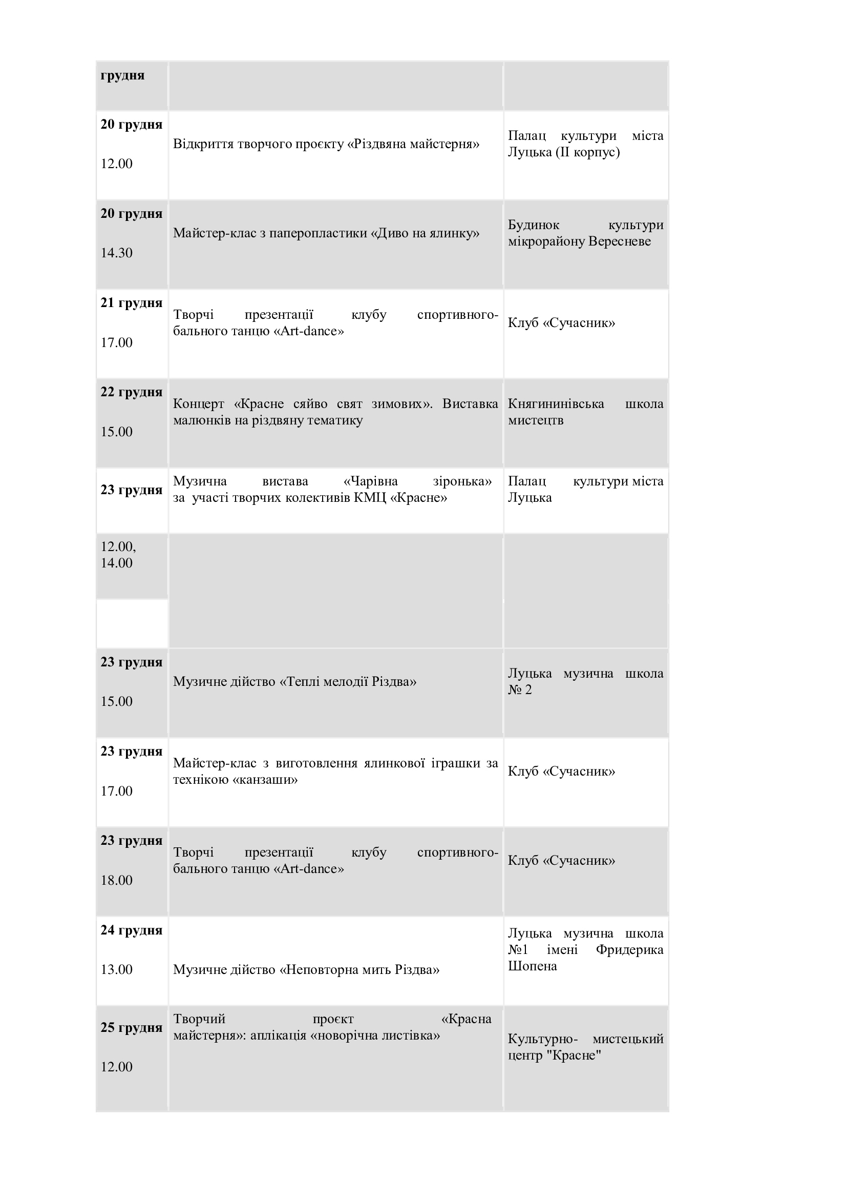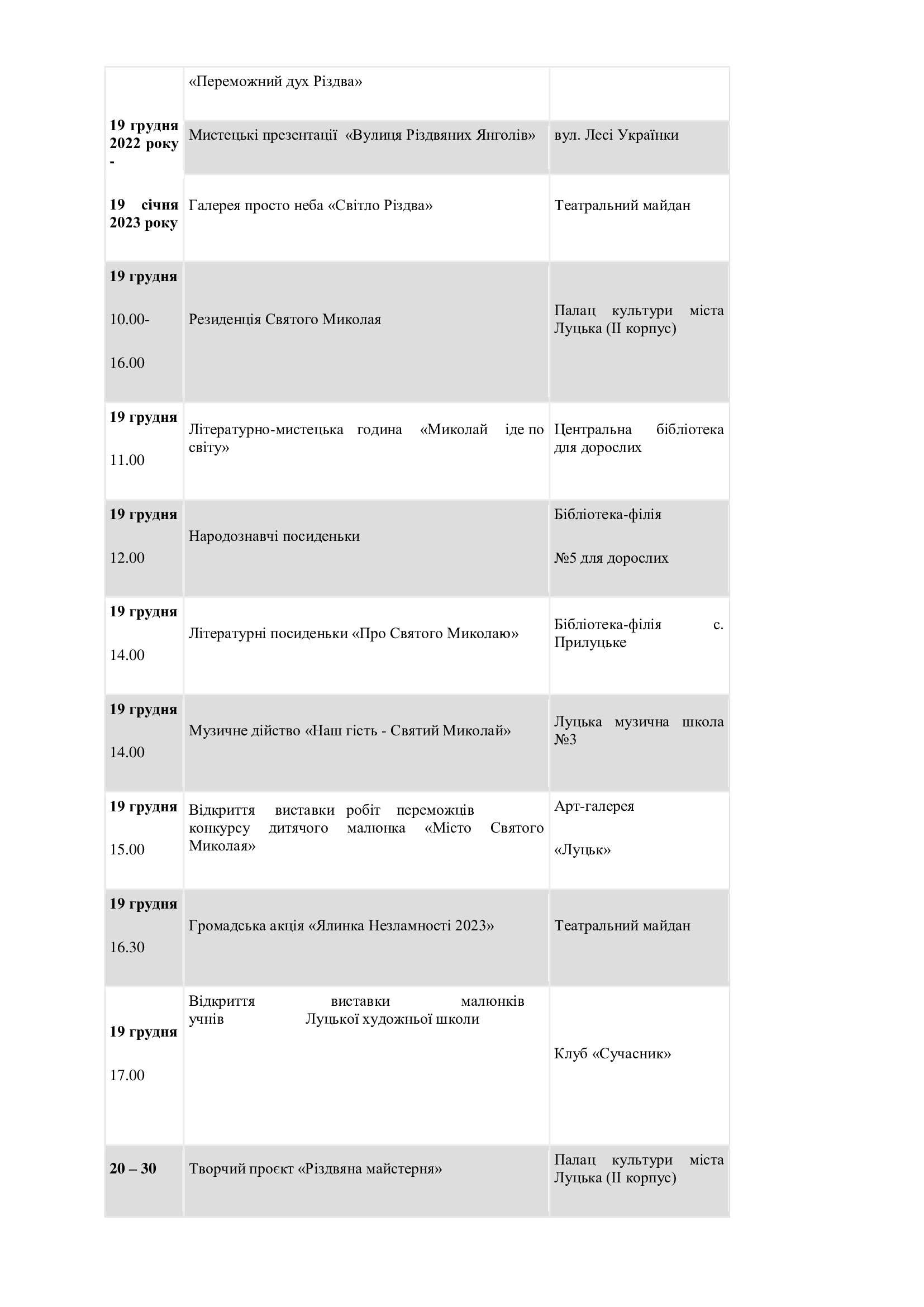 У Луцьку підготували список заходів, які відбуватимуться у місті та громаді в період новорічно-різдвяних свят.