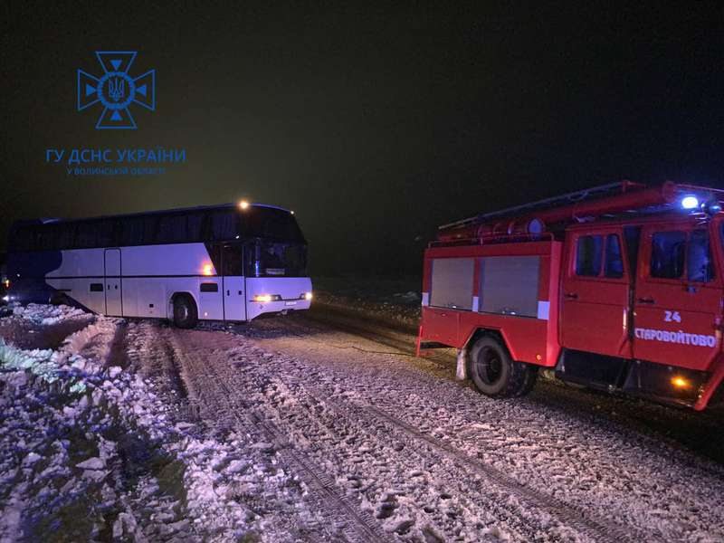У ніч на суботу, 17 грудня, рятувальники відбуксирувати зі складної ділянки дороги пасажирський автобус Neoplan, який застряг у сніговому заметі поблизу села Римачі Ковельського району.
