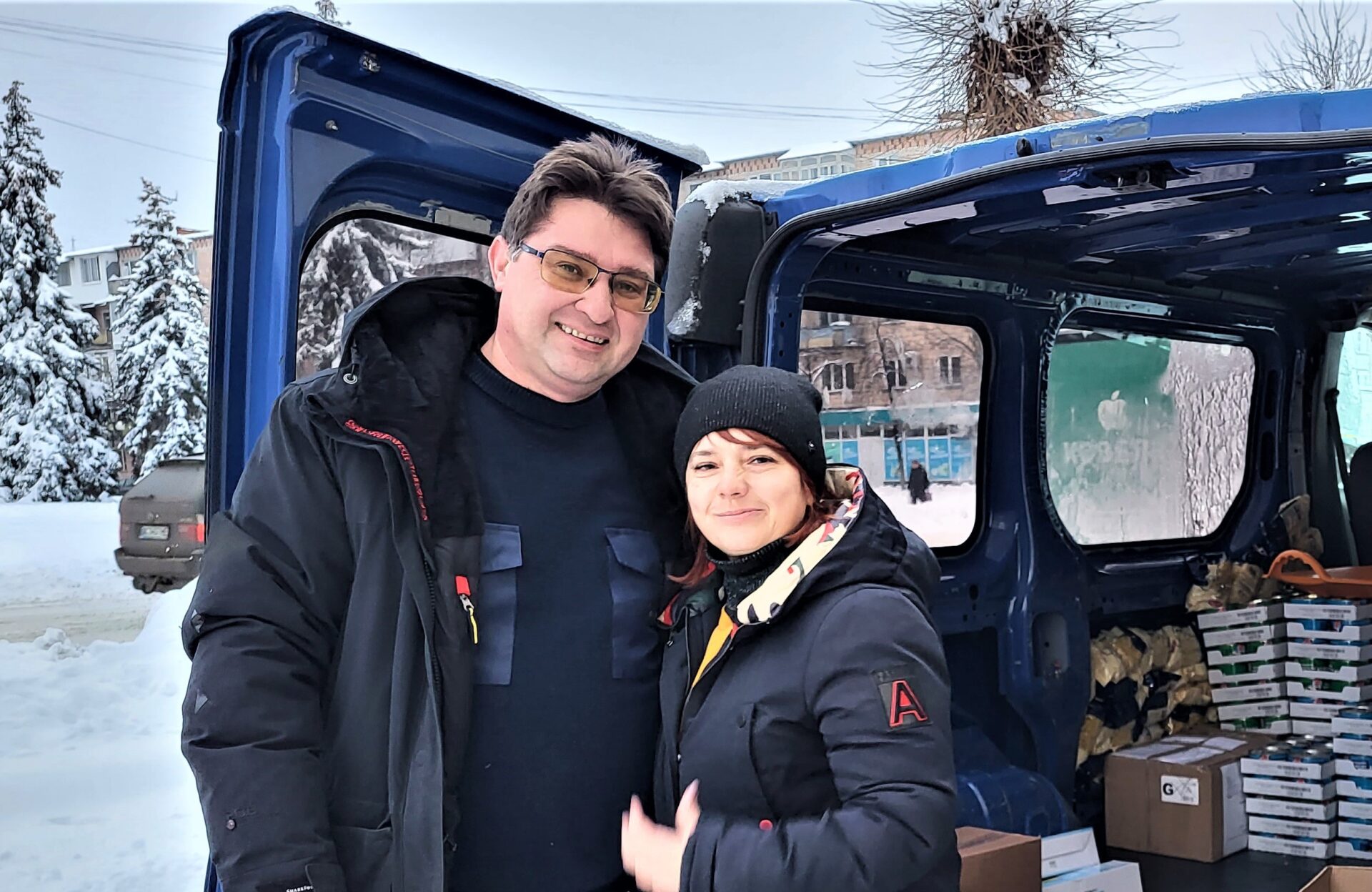 Юрій Володимирович працює заступником директора в Ліцеї №11 м. Ковеля. Цей заклад уже понад десять років товаришує з ліцеєм імені Максиміліана Оссолінського у місті-партнері Бжегу Дольному. Тож родина неодноразово була в Польщі, де має багато знайомих. А у перші дні війни розпочала звідти доставляти гуманітарні вантажі.