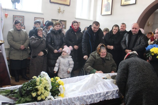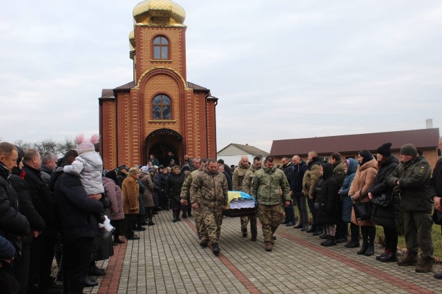 Церемонія прощання з військовослужбовцем розпочалась біля будинку в рідному селі та у місцевому Свято-Георгіївському храмі.