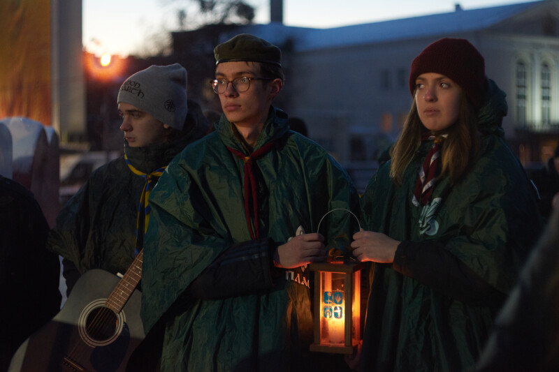 На завершення громадської акції луцькі пластуни роздавали присутнім Вифлиємський вогонь миру, а громада спільно виконала духовний гімн України “Боже великий, єдиний”.