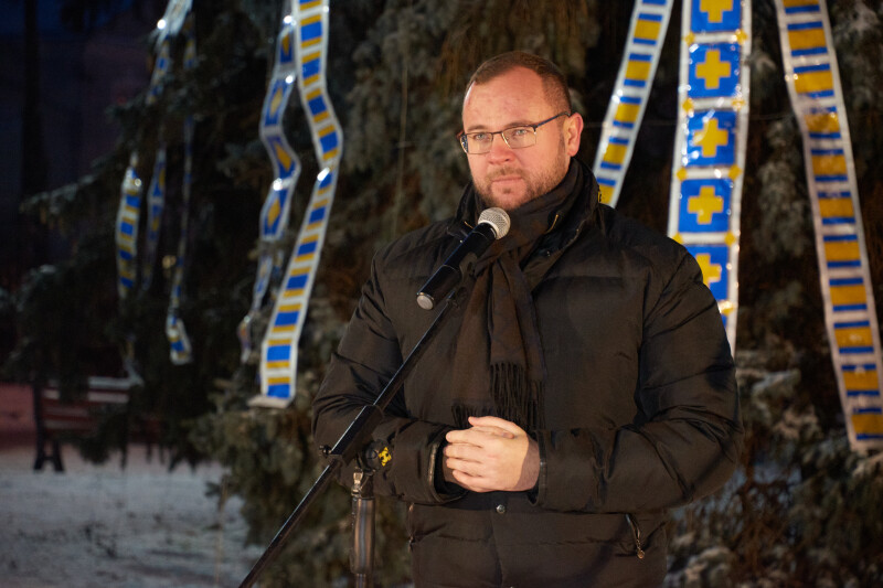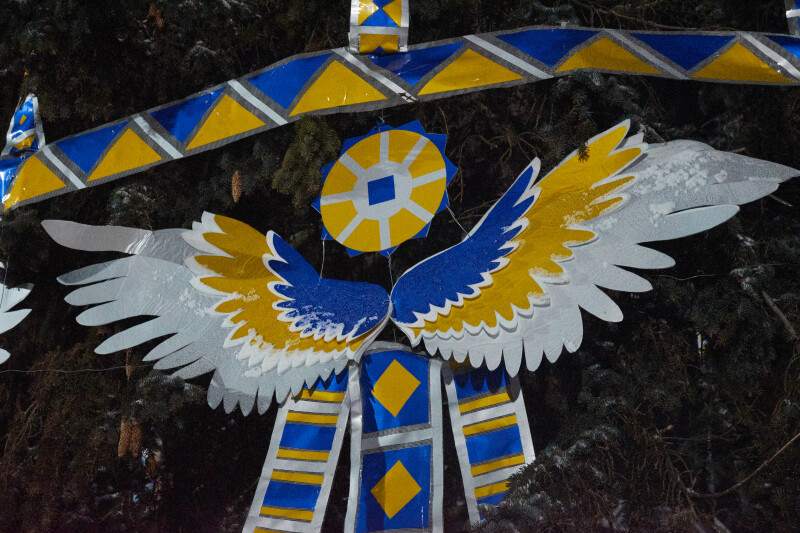 “На жаль, цього року ми не можемо відзначати його і розпочинати сезон наших свят так, як ми робили це в попередні роки. Але все ж, наша ялинка прикрашена янголами та стрічками у національних кольорах, і це ще одне свідчення того, що ми надіємося, ми із упевненістю дивимося вперед, і ми віримо в нашу перемогу”, - наголосив він.